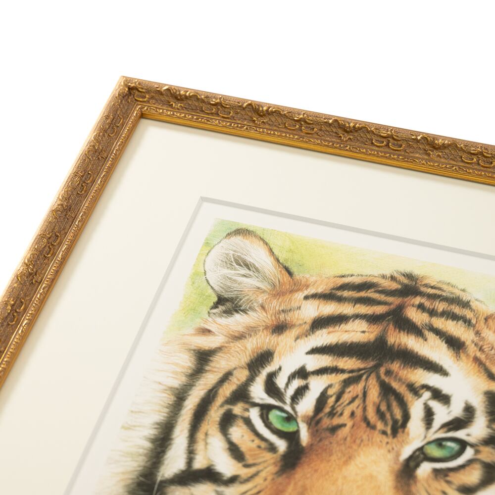 リアルな質感と静かな迫力が同居し、まるで目の前に生きた虎が佇んでいるかのような存在感を放ちます。