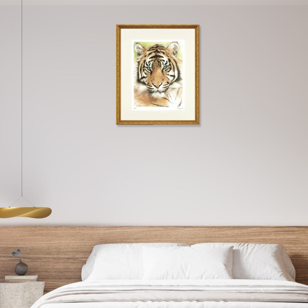 虎の堂々とした姿は「勇気」や「繁栄」の象徴とされ、インテリアとしても縁起の良いモチーフです。