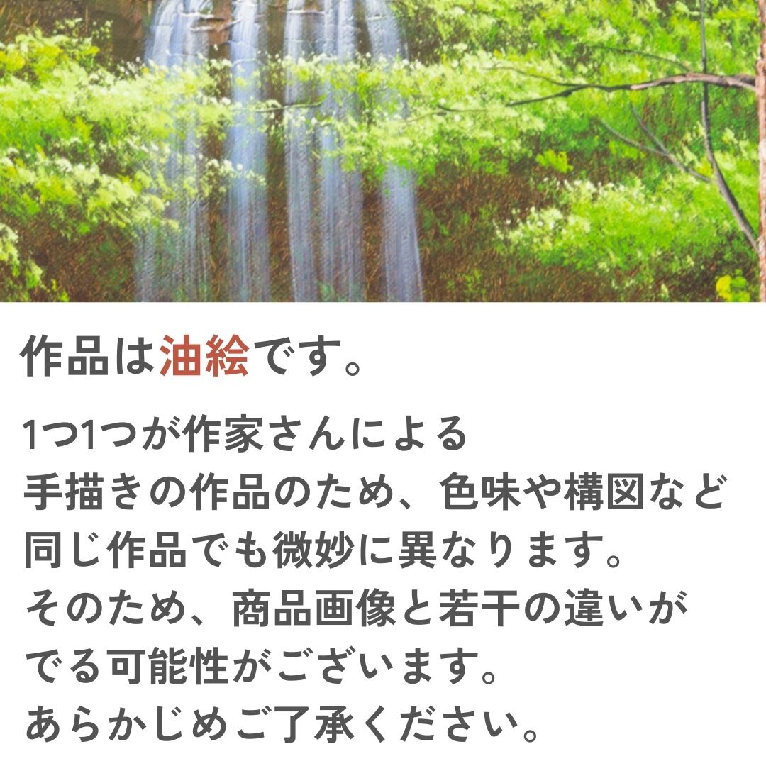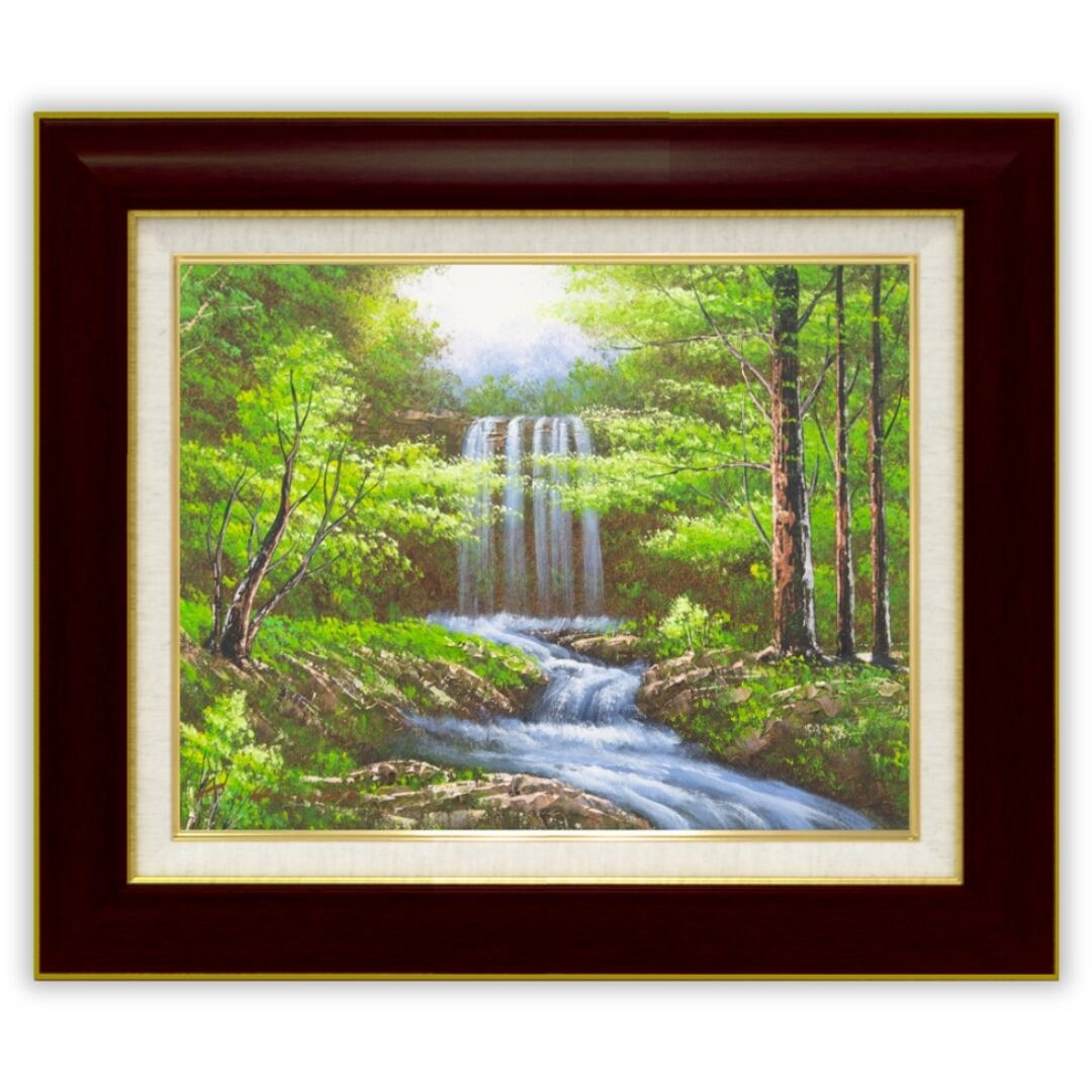 柔らかな光に照らされる新緑の森の中、静かに流れ落ちる滝を描いたインテリアアートです。清らかな水の動きと、木々の生命力あふれる緑が織りなす景色は、自然の息吹を感じさせます。油絵ならではの絵具の重なりや筆の凹凸が、水面のきらめきや木漏れ日の明暗を立体的に表現し、深い奥行きを感じさせる仕上がりです。繊細なタッチと大胆な構図が見事に調和し、見ているだけで心を澄ませてくれるような静寂と清涼感を演出。自然の美しさをそのまま閉じ込めた、癒しと安らぎをもたらすアート作品です。