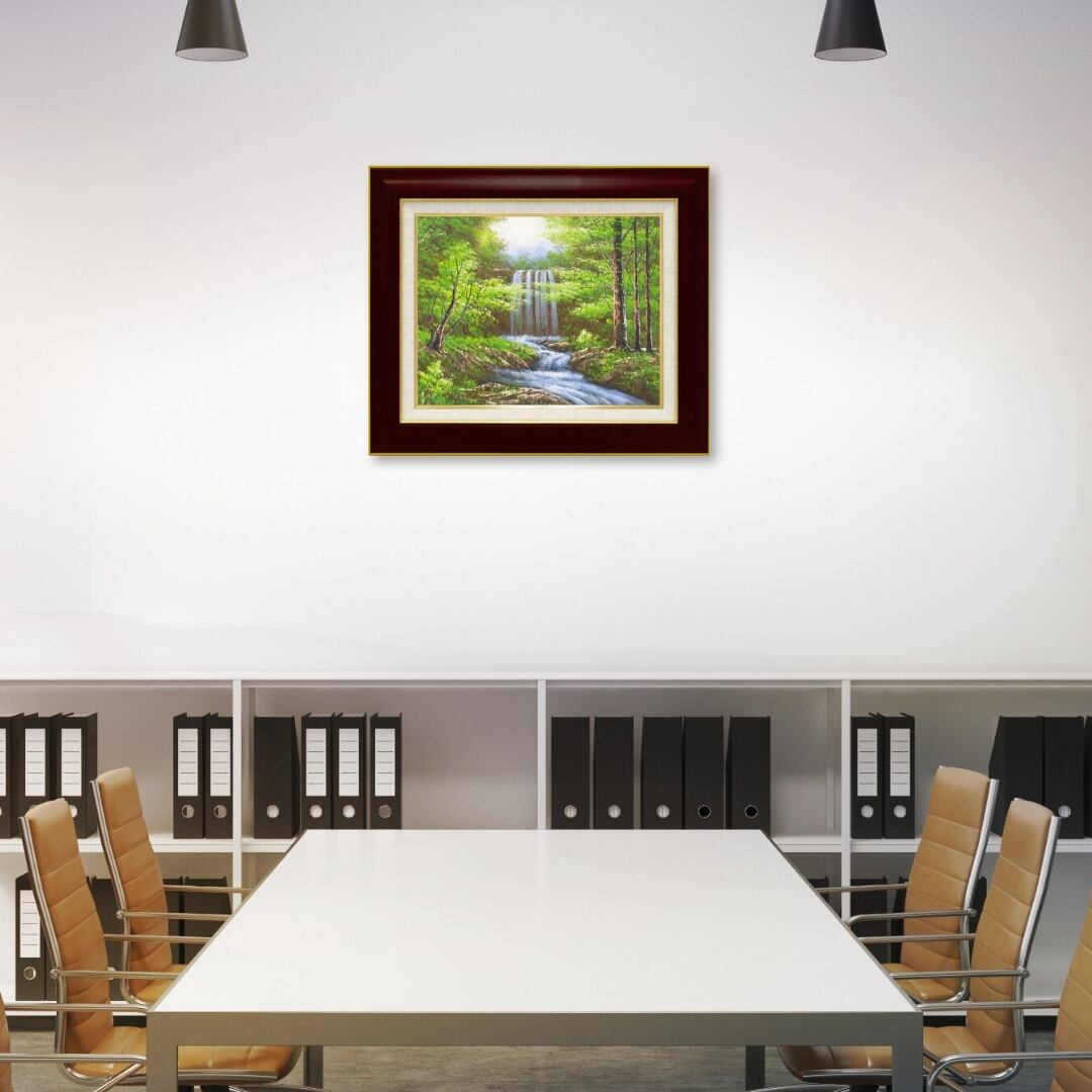 この額縁付きのインテリアアートは、リビングにも自然に溶け込み、空間に清らかな安らぎを添えます。滝の音を感じるような穏やかな情景が、日常の疲れを癒し、心を落ち着けてくれます。また、オフィスに飾っても爽やかな印象を与え、集中力とリラックスを両立させる穏やかな空気を演出します。自然のエネルギーを感じさせるこのアートは、見るたびに心をリセットさせ、清涼感をもたらす存在です。額縁付きなので、そのまま飾るだけで上質なアート空間を手軽に取り入れられます。