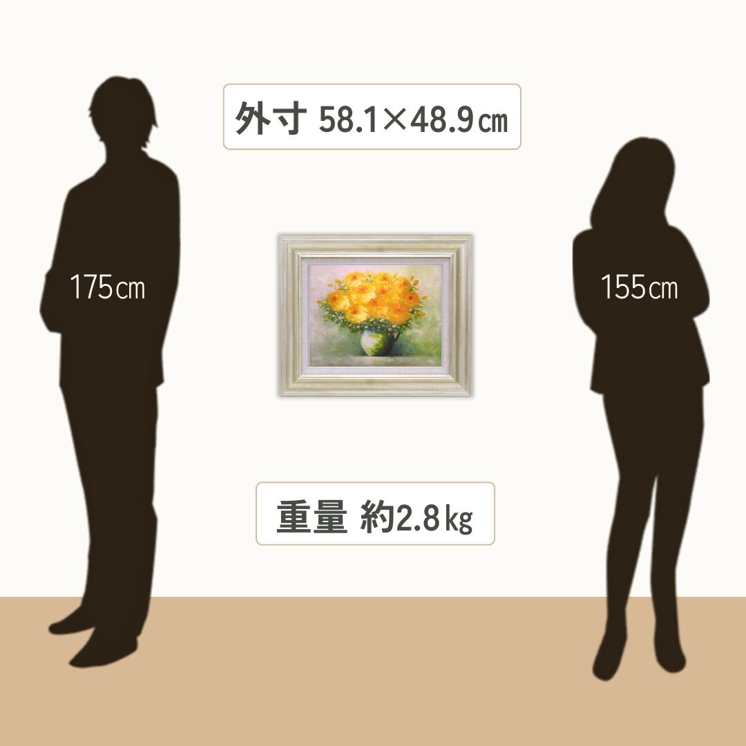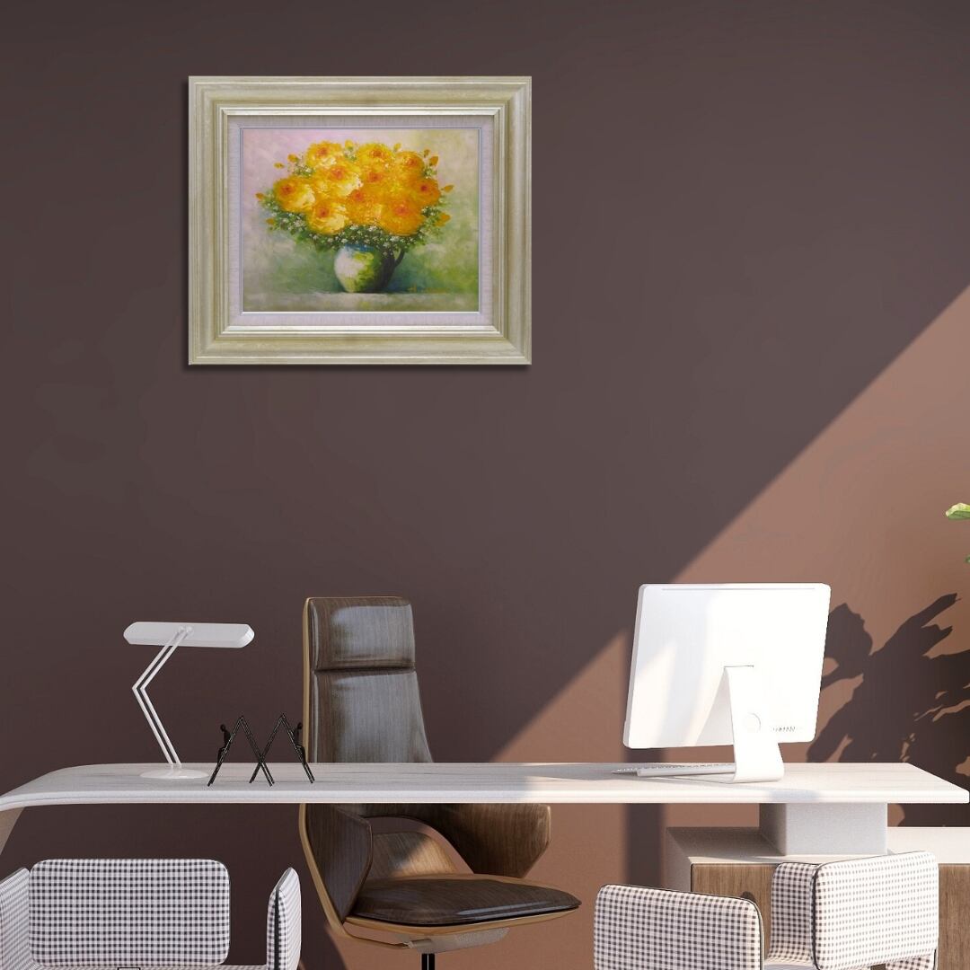 この額縁付きのインテリアアートは、リビングに明るさと温もりを与え、毎日の暮らしに優しい彩りを添えます。鮮やかな黄色の花が空間全体を明るくし、見るたびに前向きな気持ちにさせてくれます。また、店舗に飾れば、お客様を明るく迎える華やかなアクセントとして印象を高め、温かな雰囲気を演出します。自然の美しさと絵具のぬくもりが調和したこのアートは、癒しと幸福感を同時に感じさせる存在。額縁付きなので、届いてすぐに上質なインテリアアートとしてお楽しみいただけます。