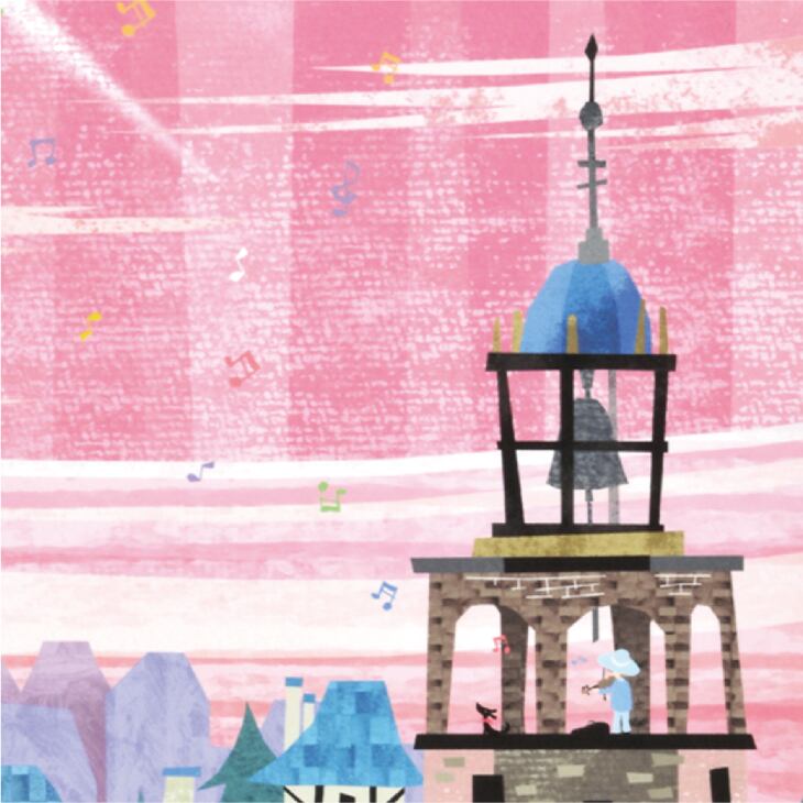 小さな街の温もりと、空に漂う音符のきらめきが、見る人の心に穏やかな旋律を奏でます。