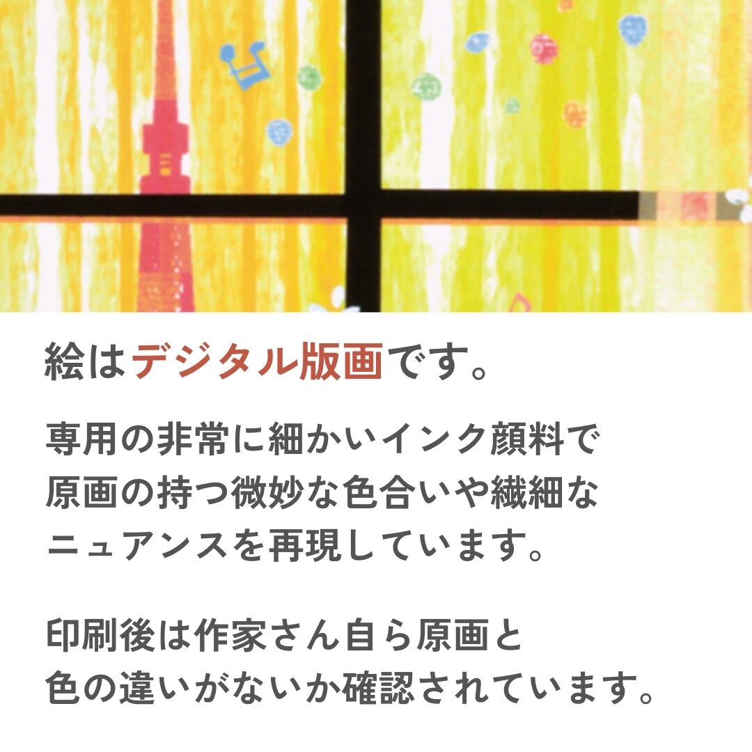 あたたかな世界と美しい色彩で店舗やご家庭のインテリアアートとしてピッタリ。