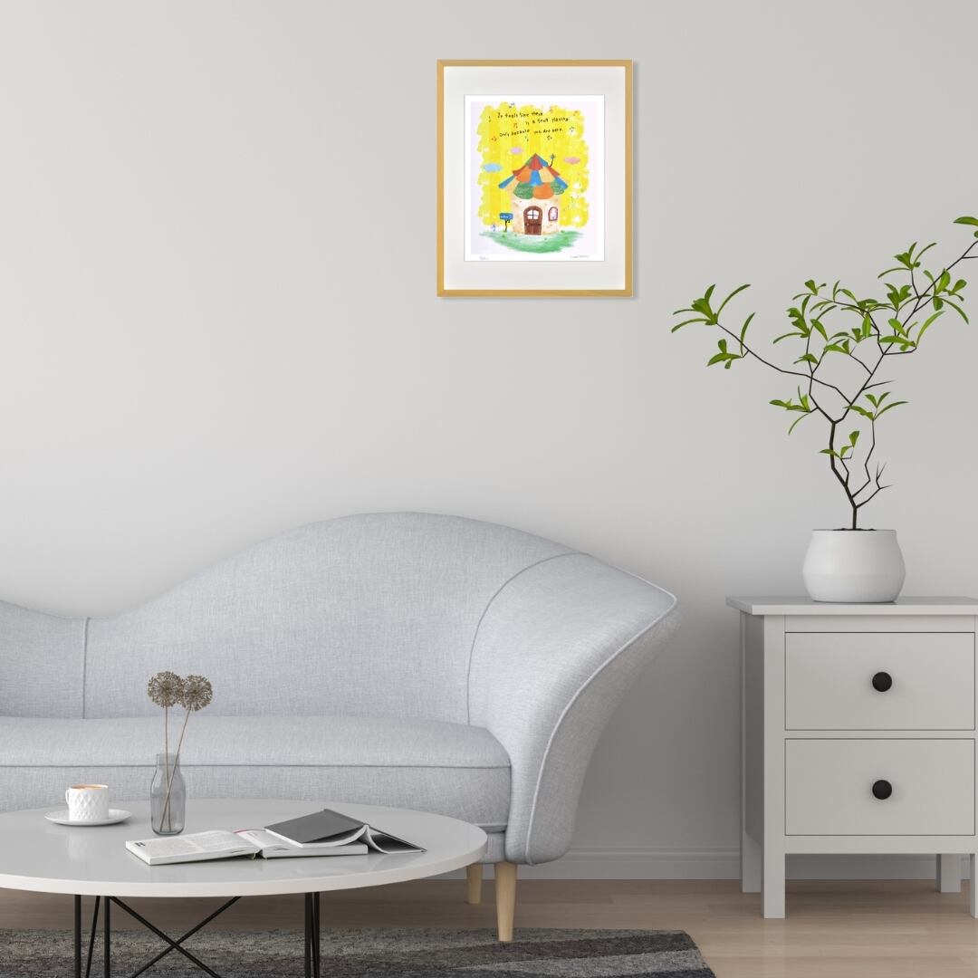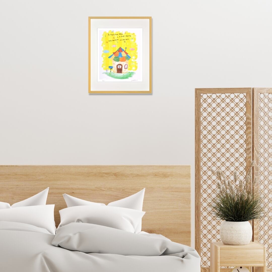 この作品をインテリアアートとして飾ると、空間が明るくやさしい雰囲気に包まれます。
