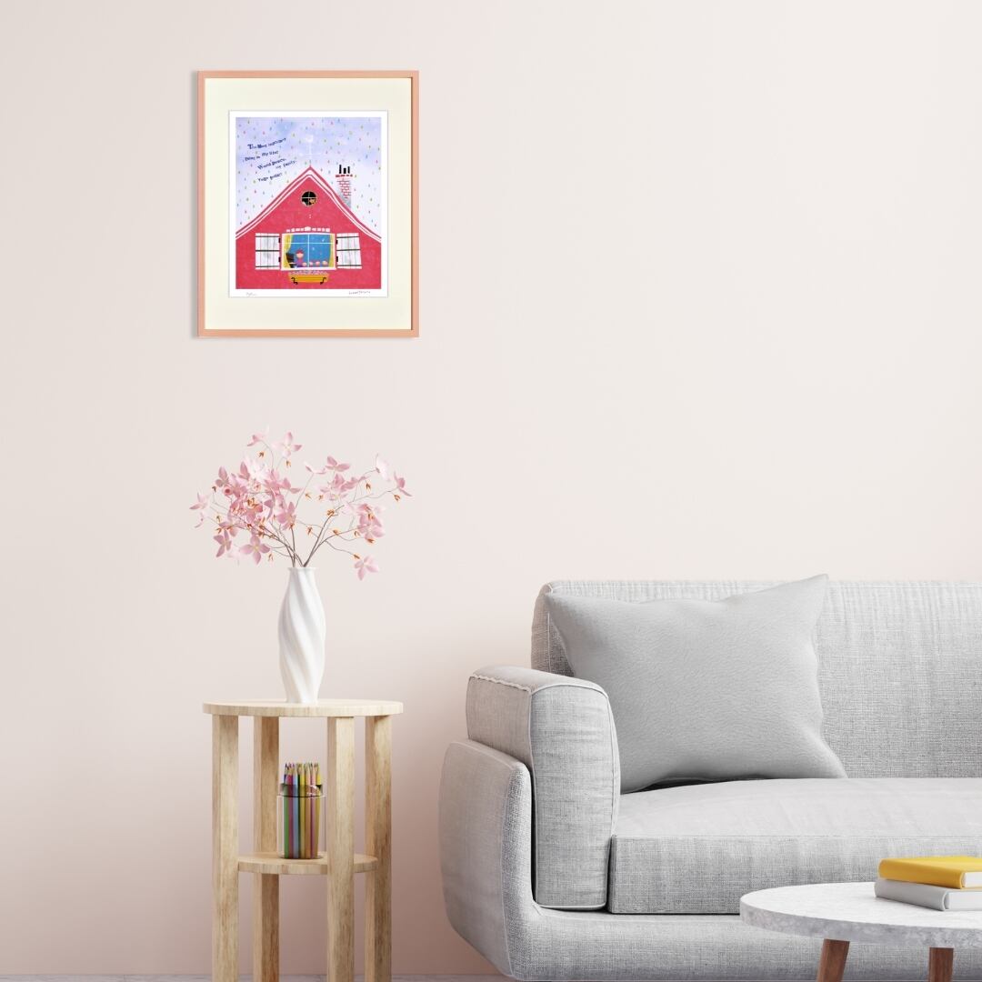 この作品をインテリアアートとして飾ると、部屋に明るさと幸福感が広がります。