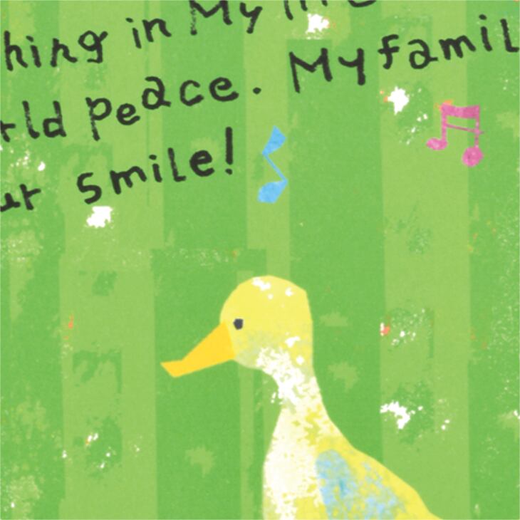 やさしいタッチと鮮やかな黄色のコントラストが心地よく、見る人に安心感とやさしさを届けてくれる一枚。