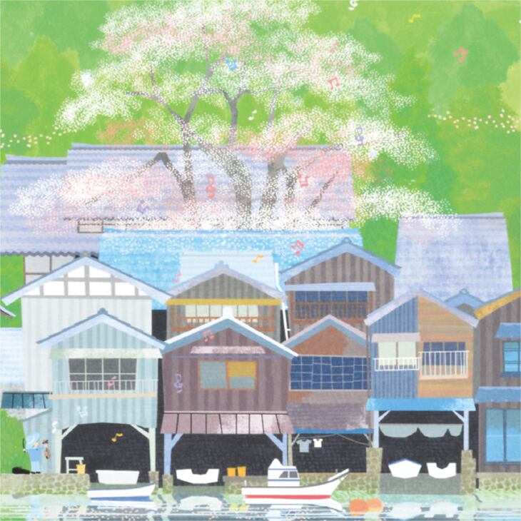 京都・伊根の風情ある家並みと満開の桜が織りなす春の情景は、