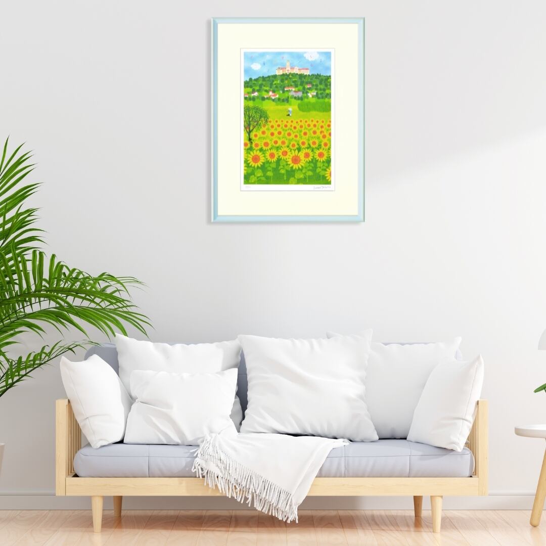 太陽のように明るいひまわりの色彩が、空間全体をやさしく照らし出すインテリアアートです。自然の美しさと光の温もりを感じさせるこの一枚は、心を前向きにしてくれる存在となります。明るいリビングや穏やかな時間を過ごす場所に飾ることで、いつでも爽やかな夏の空気を感じられる空間を演出します。