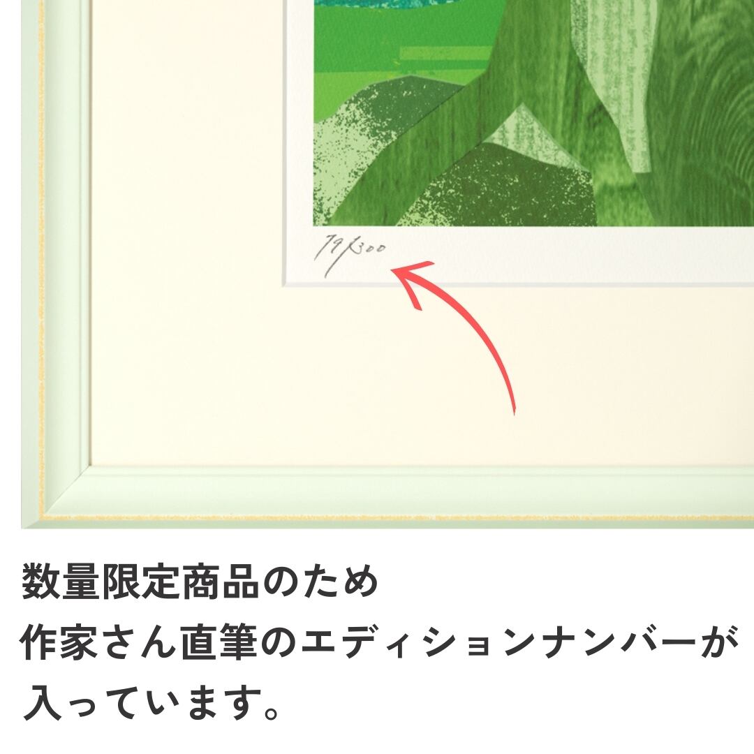図柄ごとに作家のサイン、エディションナンバーつきの版画作品で数量限定販売になっています。