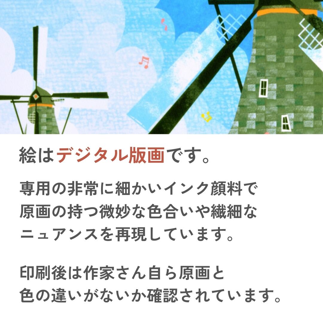あたたかな世界と美しい色彩で店舗やご家庭のインテリアアートとしてピッタリ。