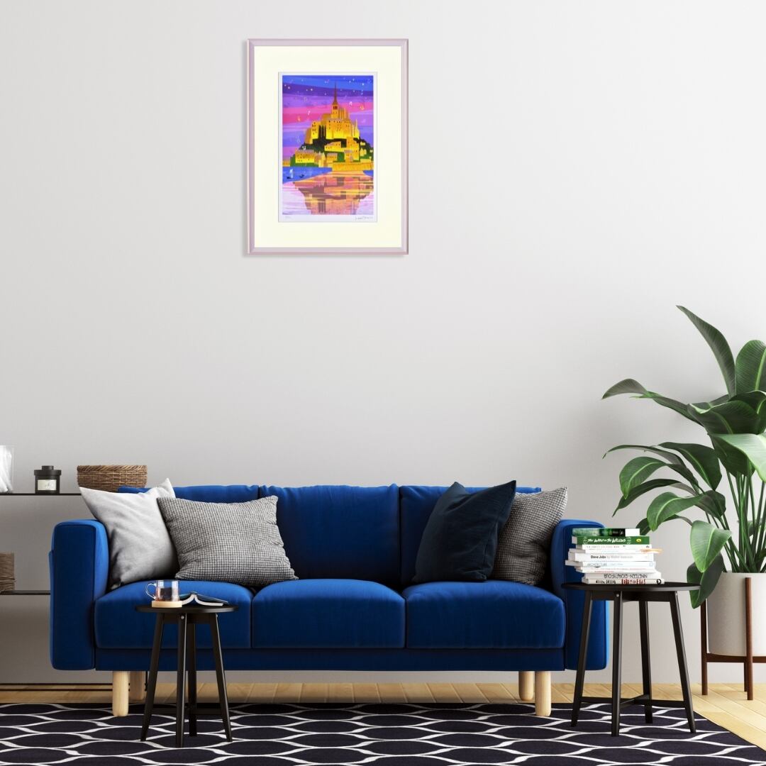 神秘的な色合いと荘厳な構図が印象的なこのインテリアアートは、空間に優雅さと深みをもたらします。淡いパープルやゴールドのトーンが穏やかな光を放ち、壁面を柔らかく彩ります。リビングや寝室、書斎などに飾れば、海外の美しい街並みを旅しているような安らぎを感じられるでしょう。静かな存在感を放つこの作品は、空間を洗練された印象に仕上げ、心に余韻を残すアートとして長く愛される一枚です。