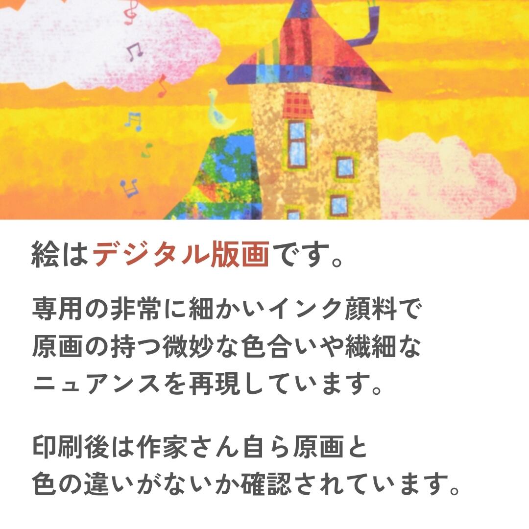 あたたかな世界と美しい色彩で店舗やご家庭のインテリアアートとしてピッタリ。