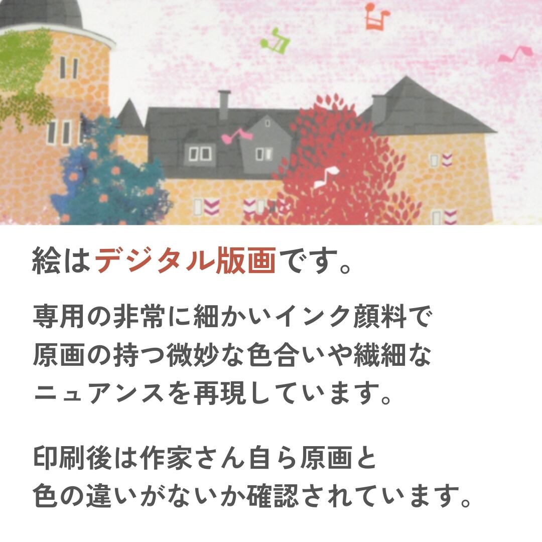 あたたかな世界と美しい色彩で店舗やご家庭のインテリアアートとしてピッタリ。
