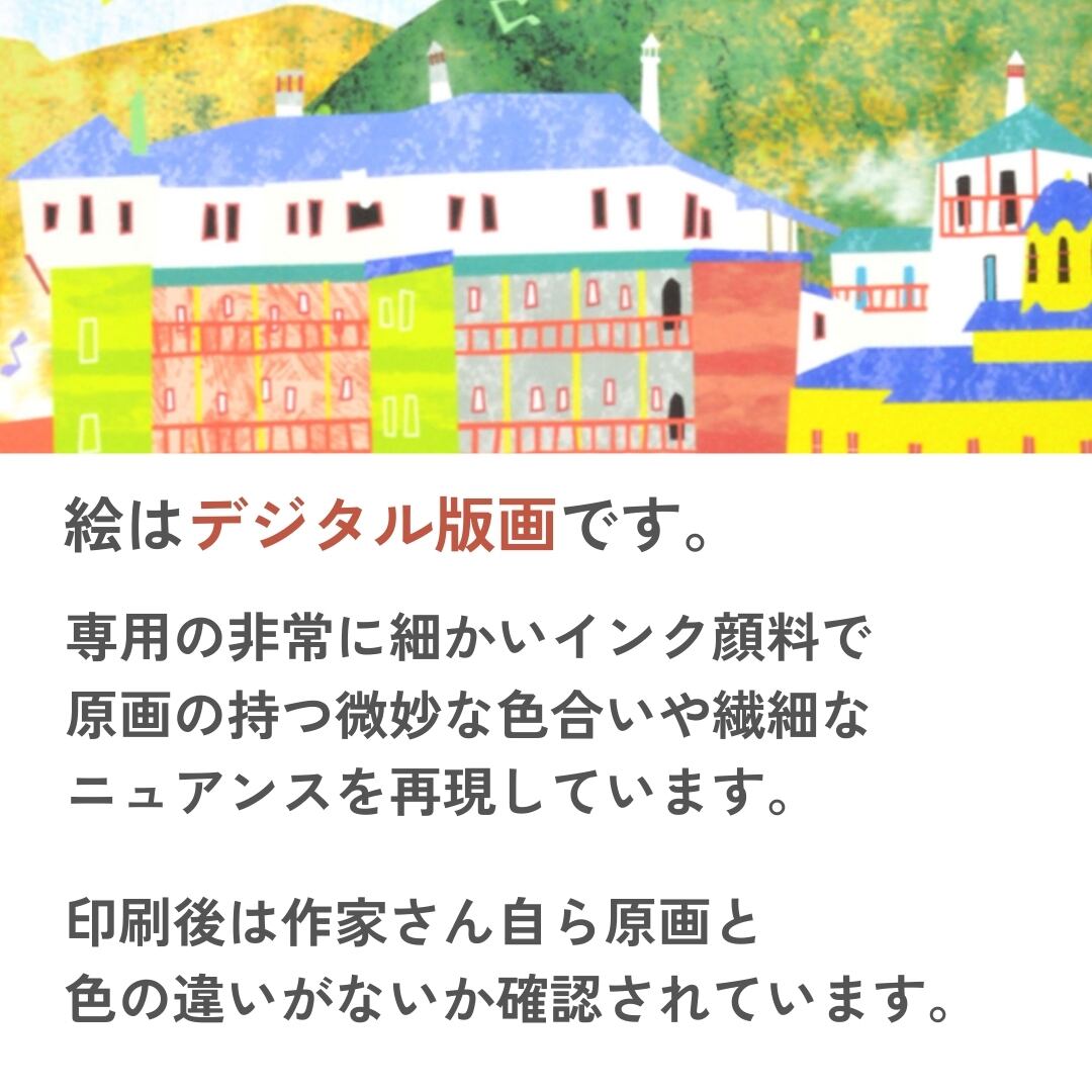 あたたかな世界と美しい色彩で店舗やご家庭のインテリアアートとしてピッタリ。