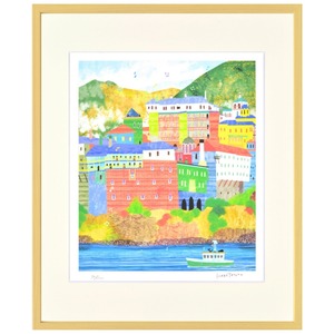 この作品は、部屋に明るさとリズムをもたらします。海の青が清々しく、建物の色彩が心に温かみを灯します。見る角度によって印象が変わり、朝の光のような爽やかさと、夕暮れの柔らかなぬくもりを感じられるでしょう。眺めているだけで、潮風の香りや遠い鐘の音が届くような静かな幸福感に包まれます。日常の中に旅の記憶を添えるような、穏やかで美しい一枚です。