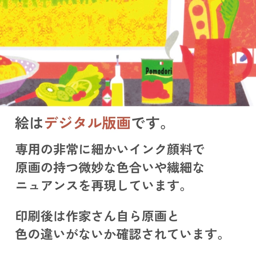あたたかな世界と美しい色彩で店舗やご家庭のインテリアアートとしてピッタリ。