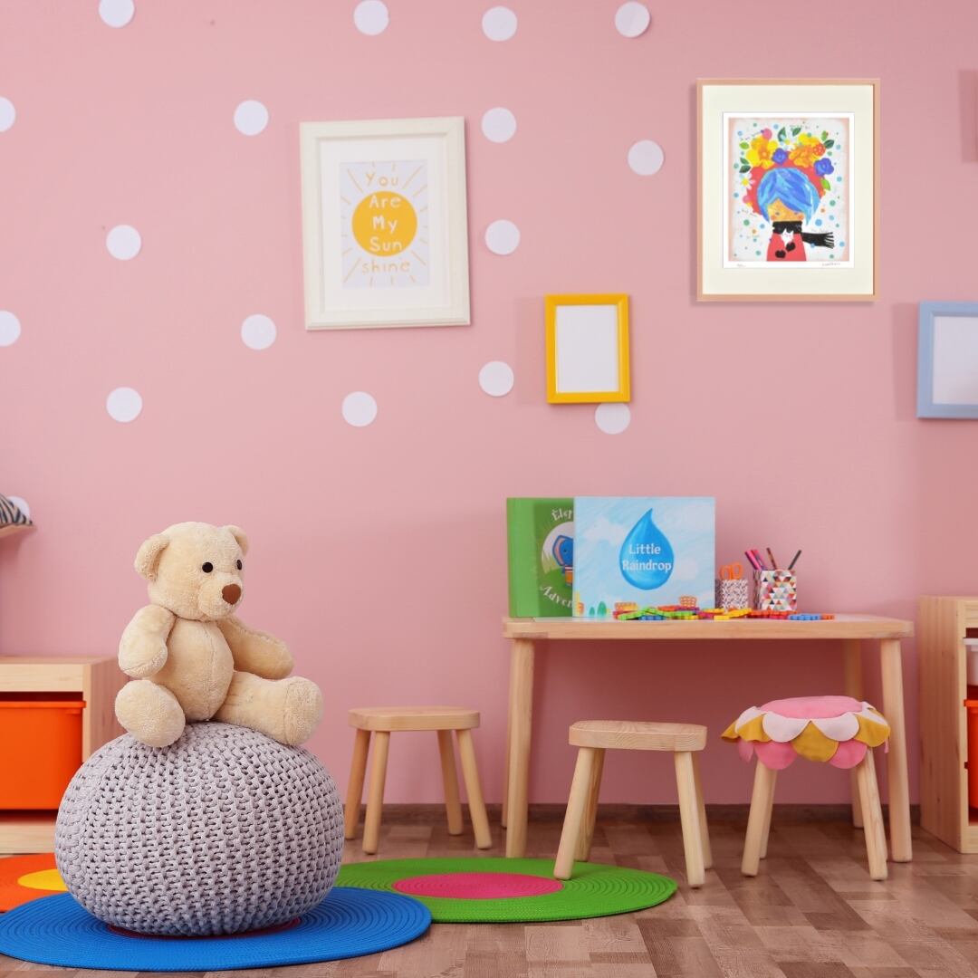 ピンクやブルー、イエローの柔らかな色彩が、空間を明るく包み込みます。優しさと希望を感じさせる絵柄は、リビングや子ども部屋、玄関などにぴったりです。見るたびに心がほっと落ち着き、日々の中に小さな幸福をもたらします。シンプルなインテリアにもよく映え、やさしい気持ちをそっと灯すような存在になるでしょう。