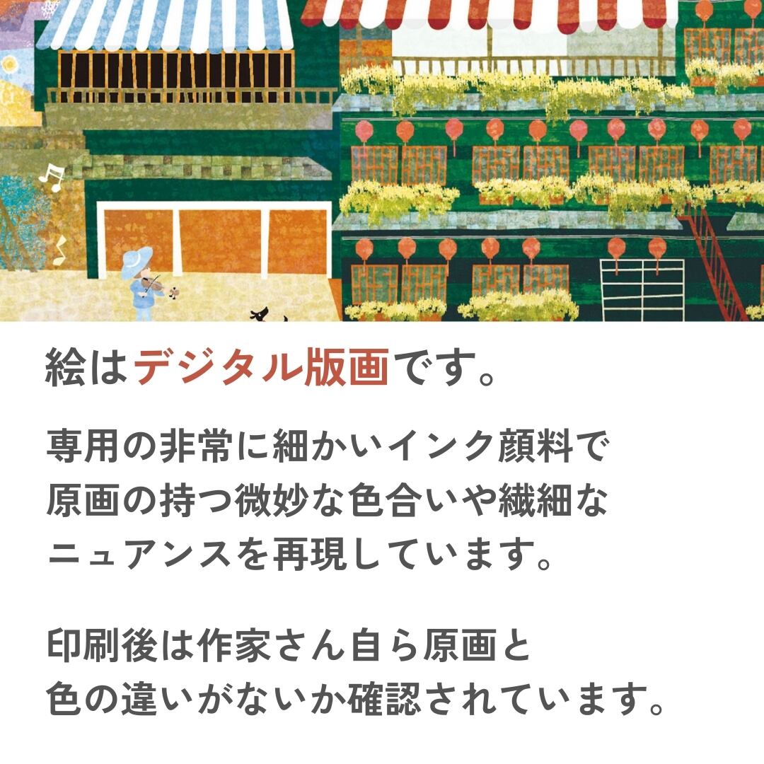 あたたかな世界と美しい色彩で店舗やご家庭のインテリアアートとしてピッタリ。