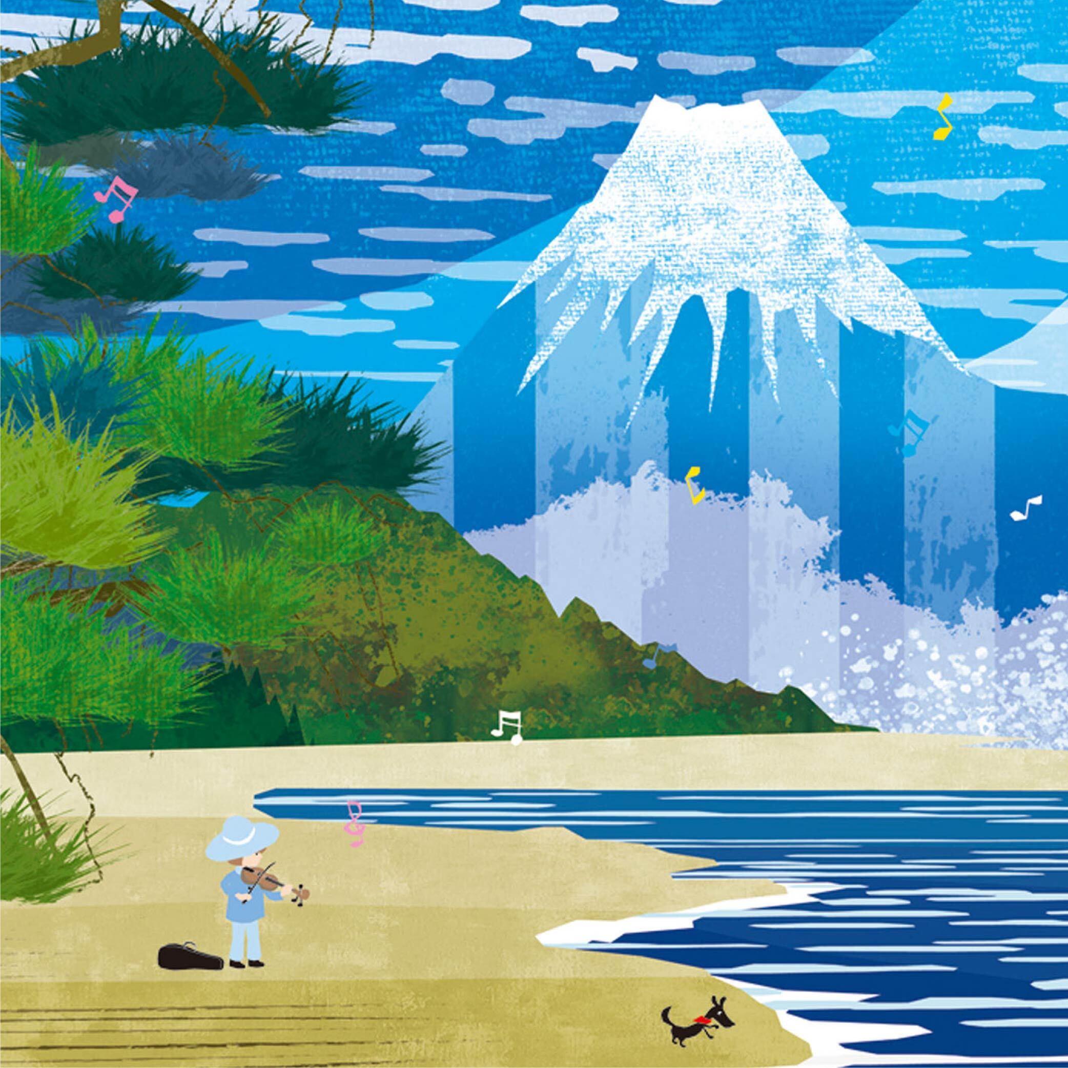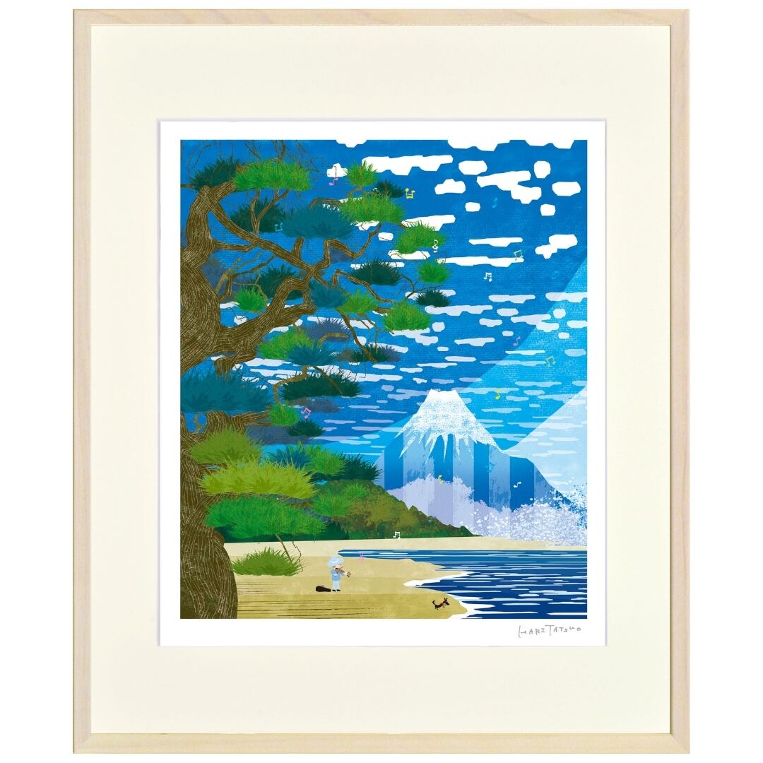 世界遺産にも登録された名勝・三保松原を、爽やかな青の世界で描いた作品です。
