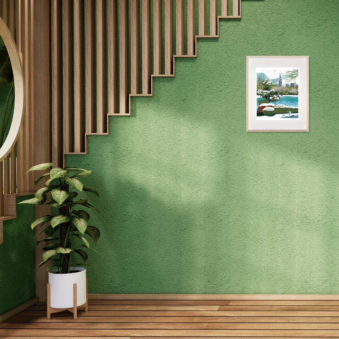 額縁付きのインテリアアートとして飾ることで、部屋全体に清らかな空気感と穏やかな光が広がり、心にゆとりとやさしさを与えてくれます。リビングや書斎、玄関などあらゆる空間に自然に調和し、静けさと安らぎを感じられる時間を演出します。現代的な都市の風景の中にも自然のぬくもりを感じさせるこのアートは、忙しい日々の中で心を整え、穏やかな気持ちを取り戻すきっかけをもたらしてくれるインテリアアートです。