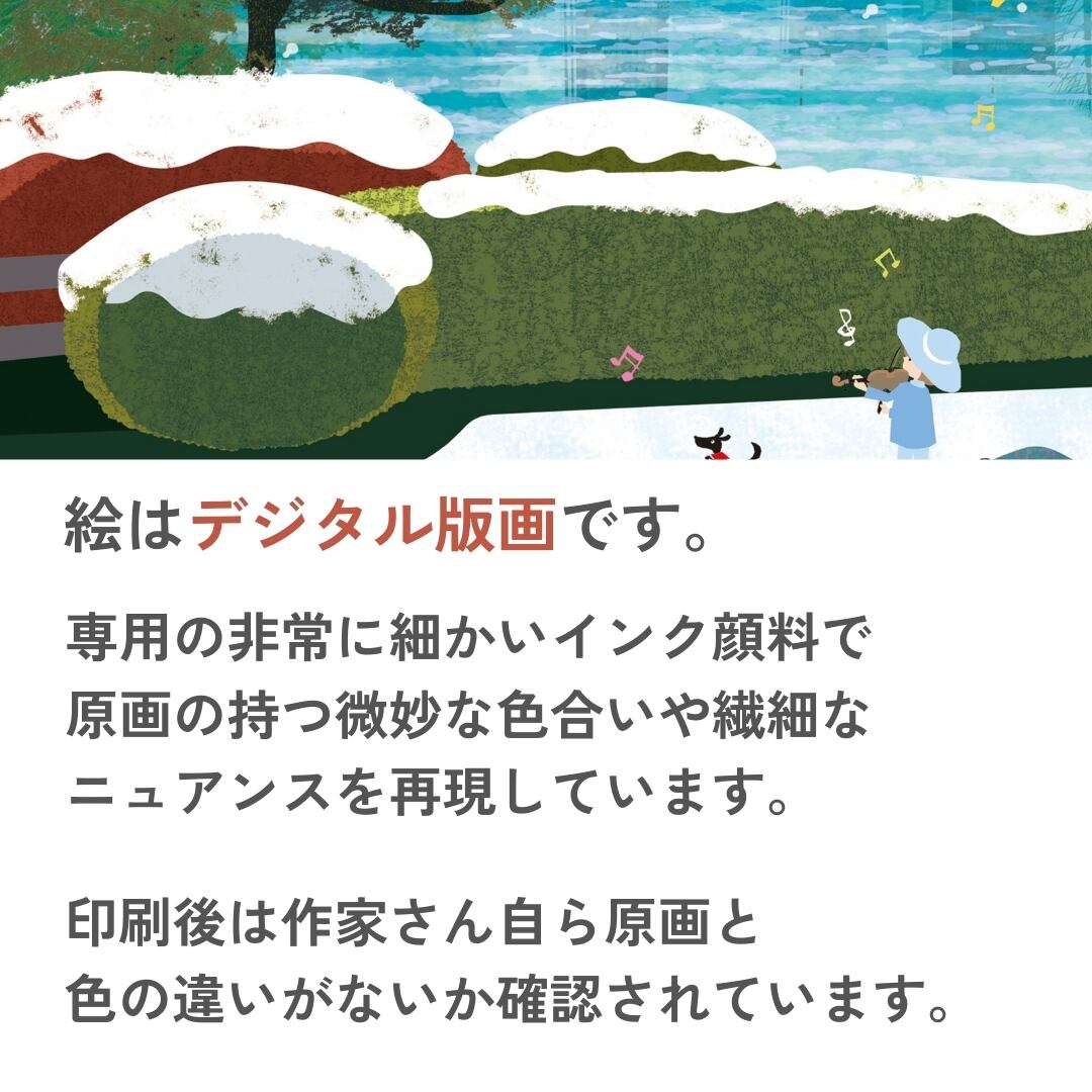あたたかな世界と美しい色彩で店舗やご家庭のインテリアアートとしてピッタリ。