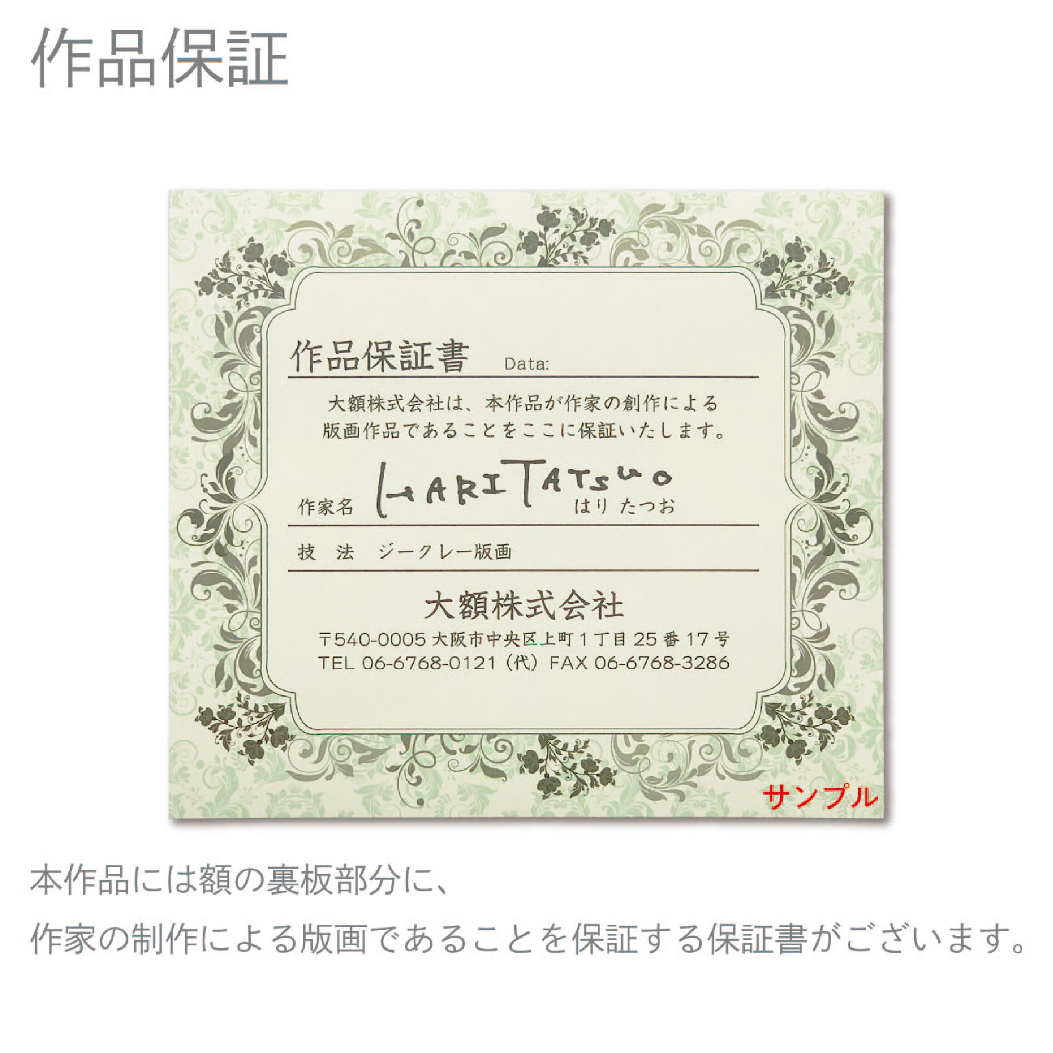 図柄ごとに作家のサイン、エディションナンバーつきの版画作品で数量限定販売になっています。