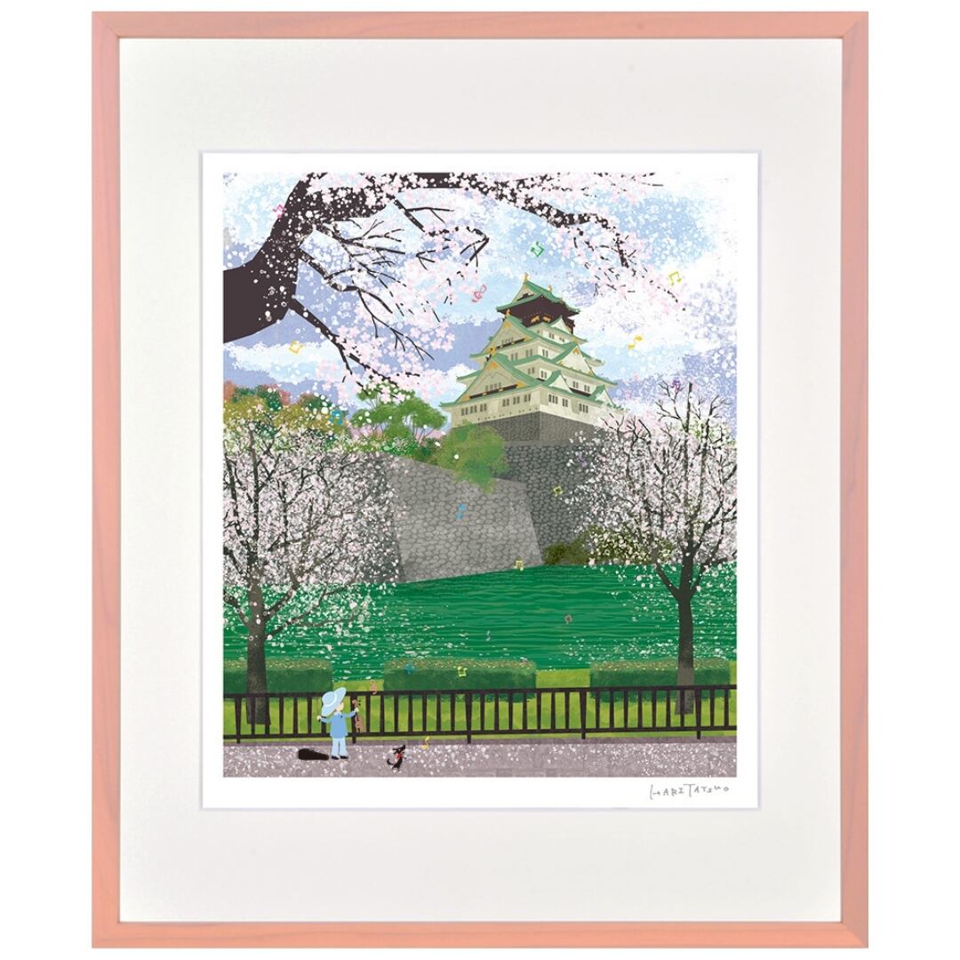 春の光に包まれた城と満開の花々が描かれたこのアートは、歴史的な建築の美しさと自然のやさしさが調和した一枚です。淡いピンクと新緑のグラデーションが織りなす風景は、まるで季節の息吹を感じるようで、時の流れとともに生まれる豊かな情緒を映し出しています。空を舞う花びらが風に揺れ、やわらかな光が石垣を照らす様子は、どこか懐かしく心を穏やかにしてくれます。伝統と自然が共存する風景の中に、静かな感動と日本らしい美意識が息づくインテリアアートです。