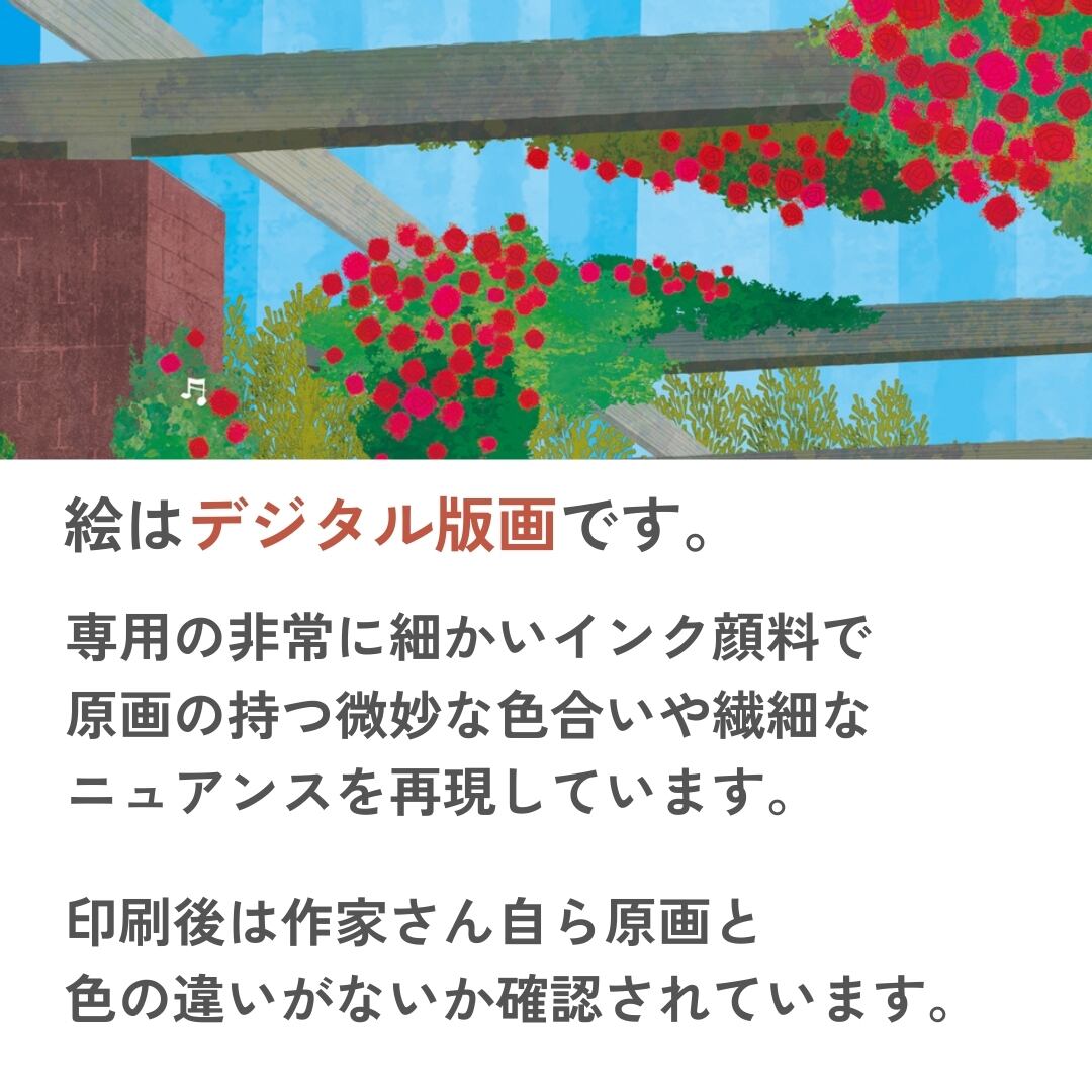 あたたかな世界と美しい色彩で店舗やご家庭のインテリアアートとしてピッタリ。