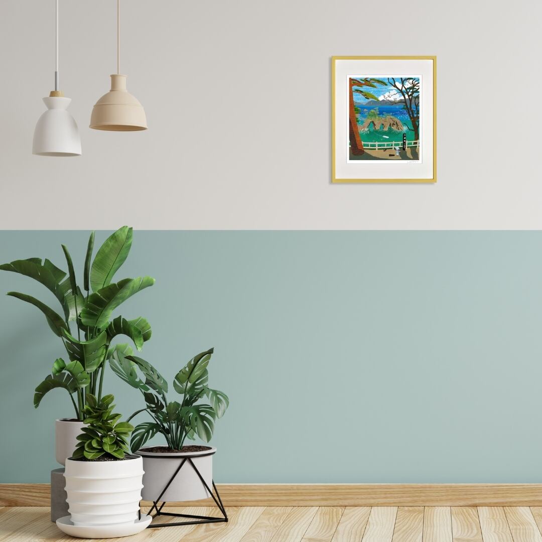 このアートを飾ることで、部屋全体に爽やかな開放感と自然の息吹が広がり、まるで海辺の風を感じるようなリラックスした時間を楽しむことができます。鮮やかなブルーと緑の色調が空間に清潔感と明るさをもたらし、日々の疲れを癒してくれる心地よい雰囲気をつくり出します。リビングや玄関、オフィスなどに飾れば、自然のパワーを取り込んだような前向きなエネルギーが満ち、見るたびに気持ちをリセットできるインテリアアートです。