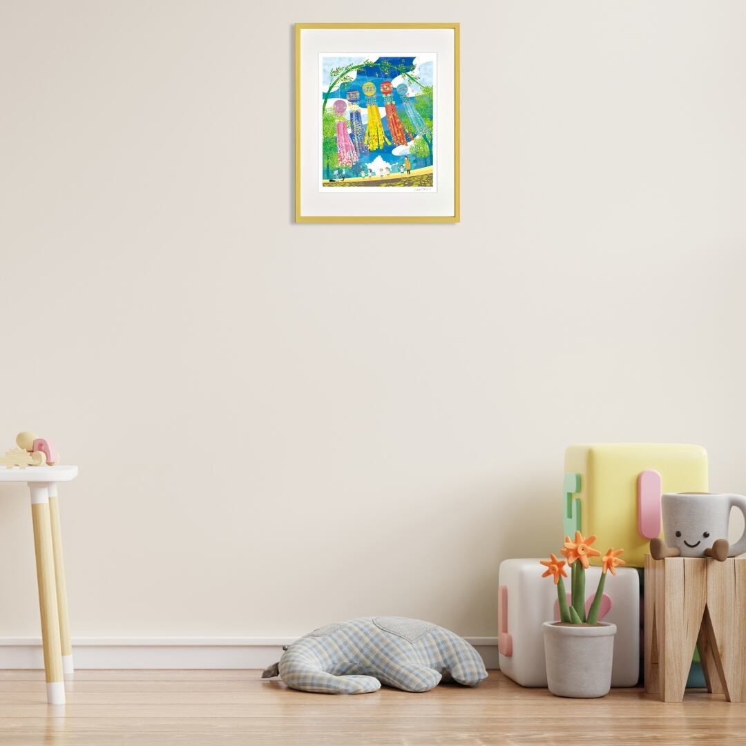 あたたかな世界と美しい色彩で店舗やご家庭のインテリアアートとしてピッタリ。