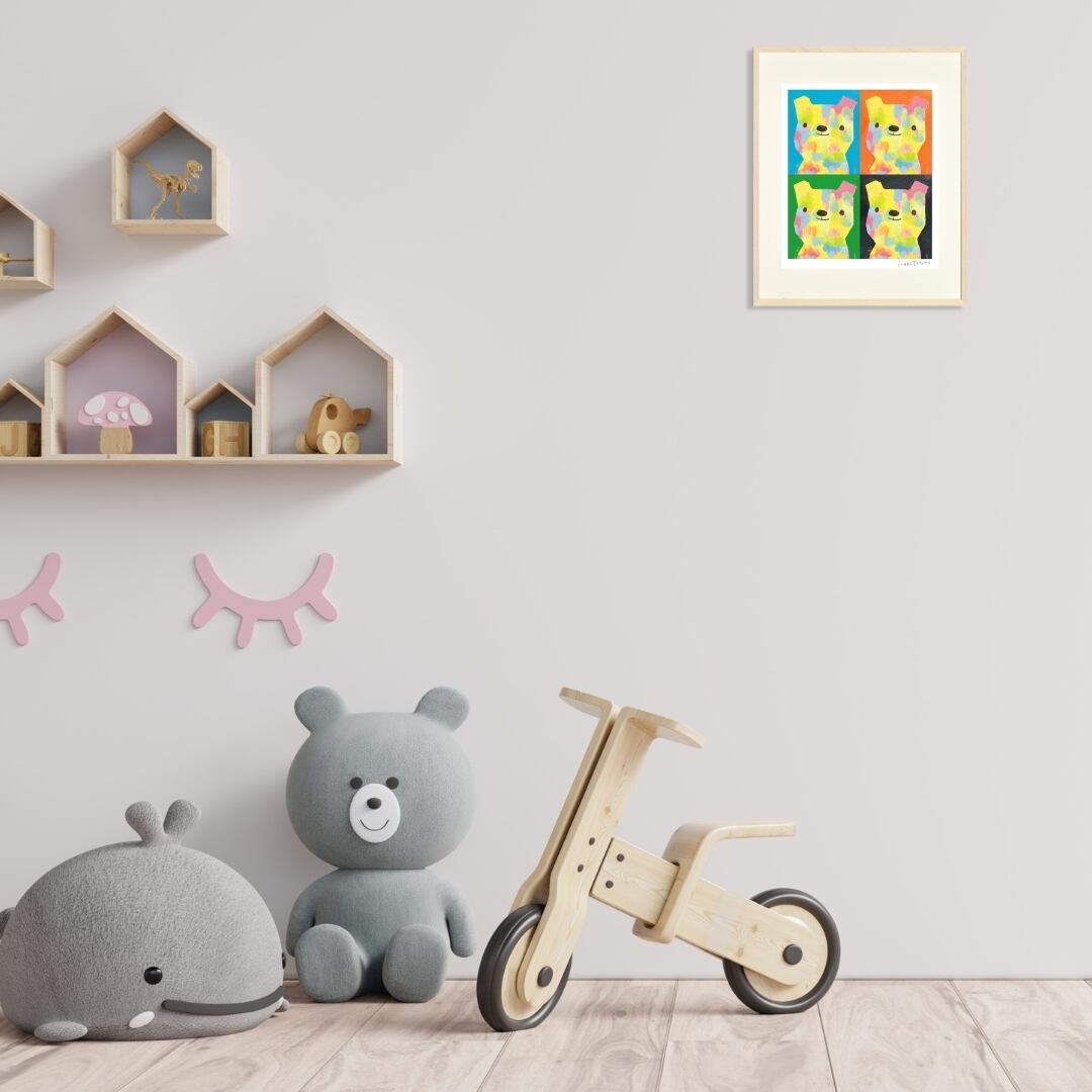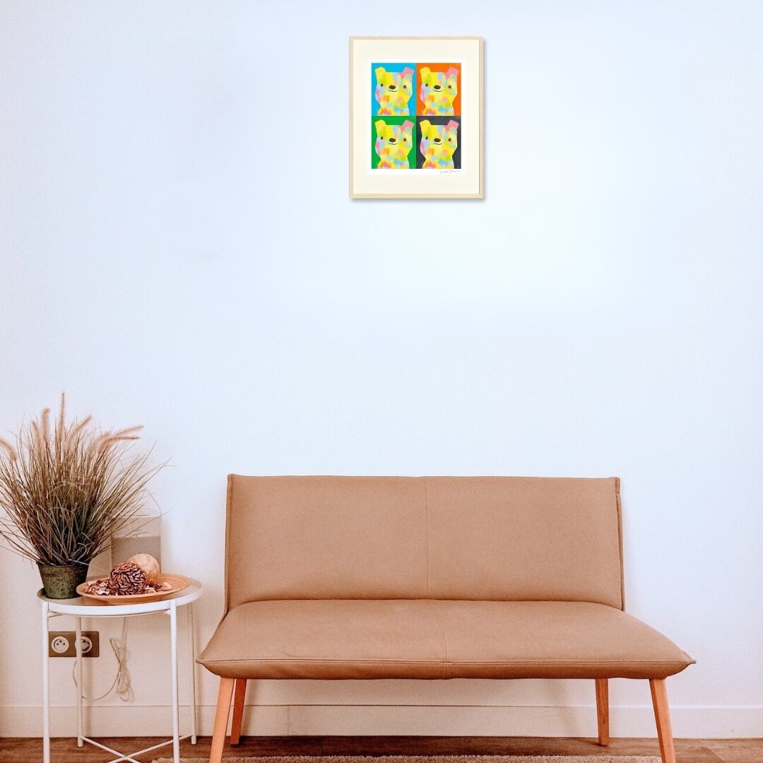 このインテリアアートは、ポップで楽しい印象をもたらし、見る人の気持ちを前向きにしてくれます。