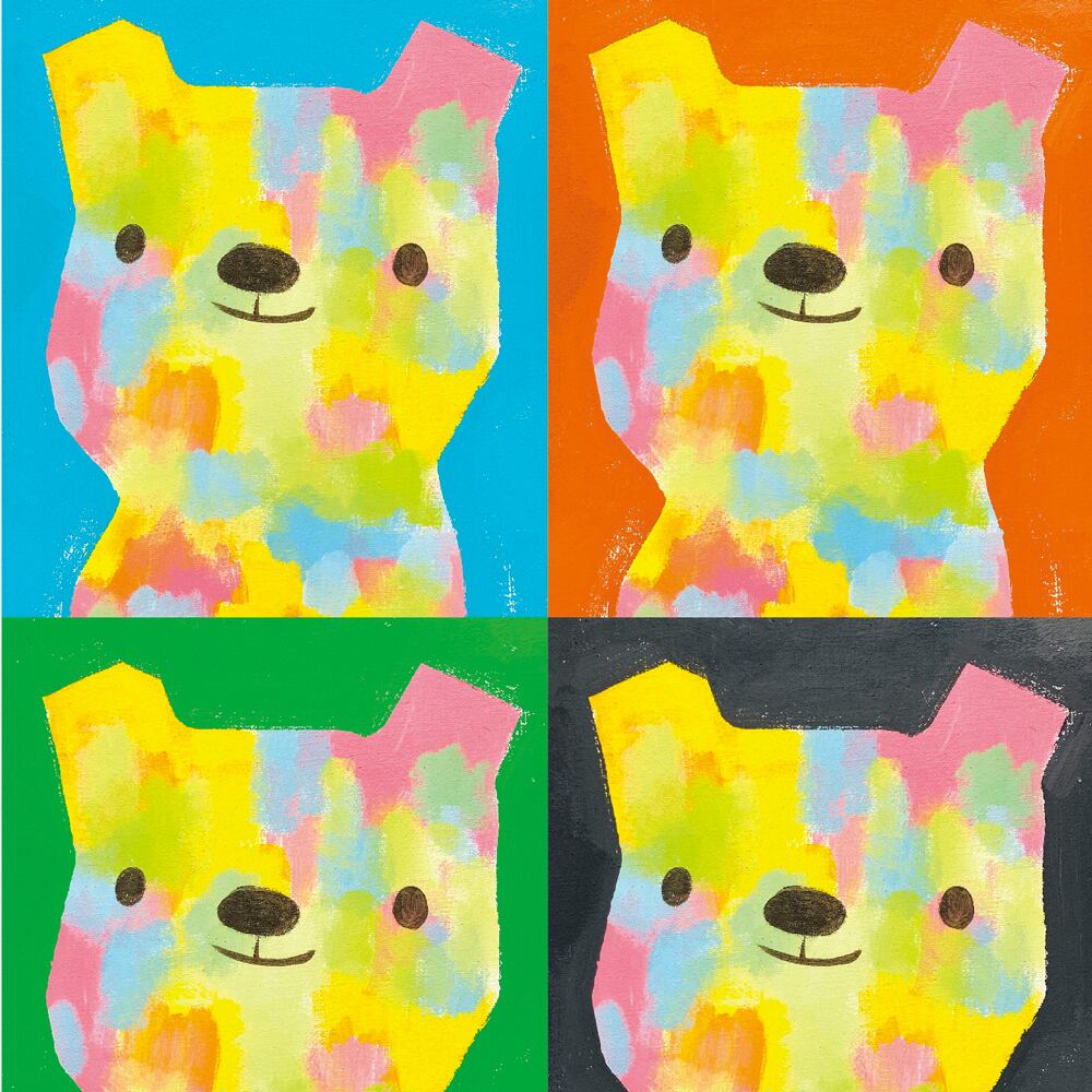 ブルー・オレンジ・グリーン・ブラックの背景に、それぞれ異なる表情で並ぶクマたちは、まるでリズムを刻むように軽やかで、見ているだけで自然と笑顔がこぼれます。
