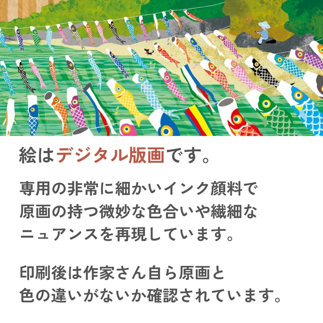 このインテリアアートは、自然のエネルギーを感じさせる力強さと、爽やかな色彩が魅力です。グリーンとブルーの調和が空間を明るくし、リビングや玄関などに飾ると開放的な印象を与えます。風にたなびく鯉のぼりの姿が、希望や成長を象徴し、前向きな気持ちを呼び起こしてくれます。日常に自然のリズムと躍動感をもたらし、見ているだけで心が軽やかになるようなインテリアアートです。