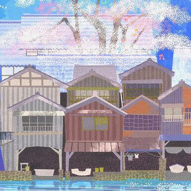 はりたつお 「京都 伊根の舟屋・夜桜」(大)
