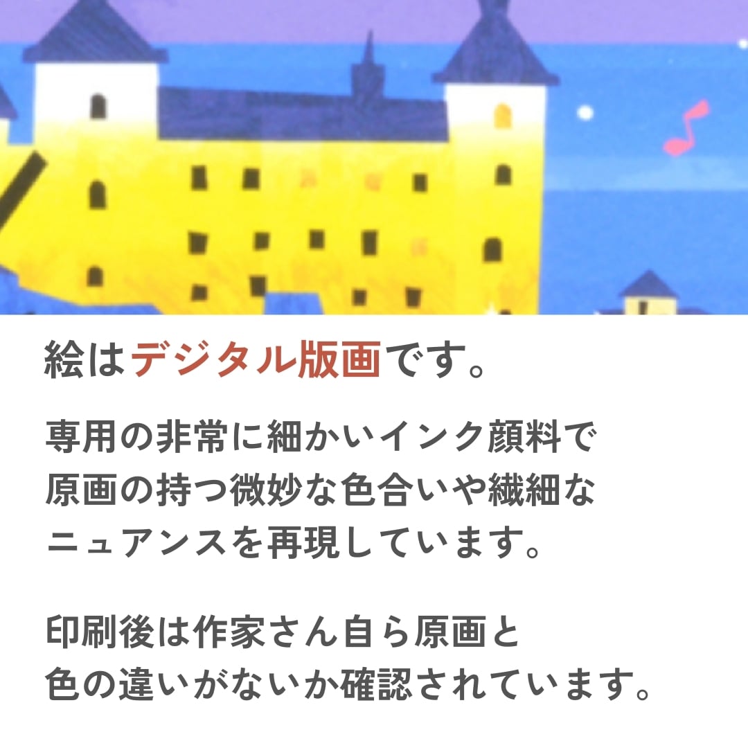 あたたかな世界と美しい色彩で店舗やご家庭のインテリアアートとしてピッタリ。