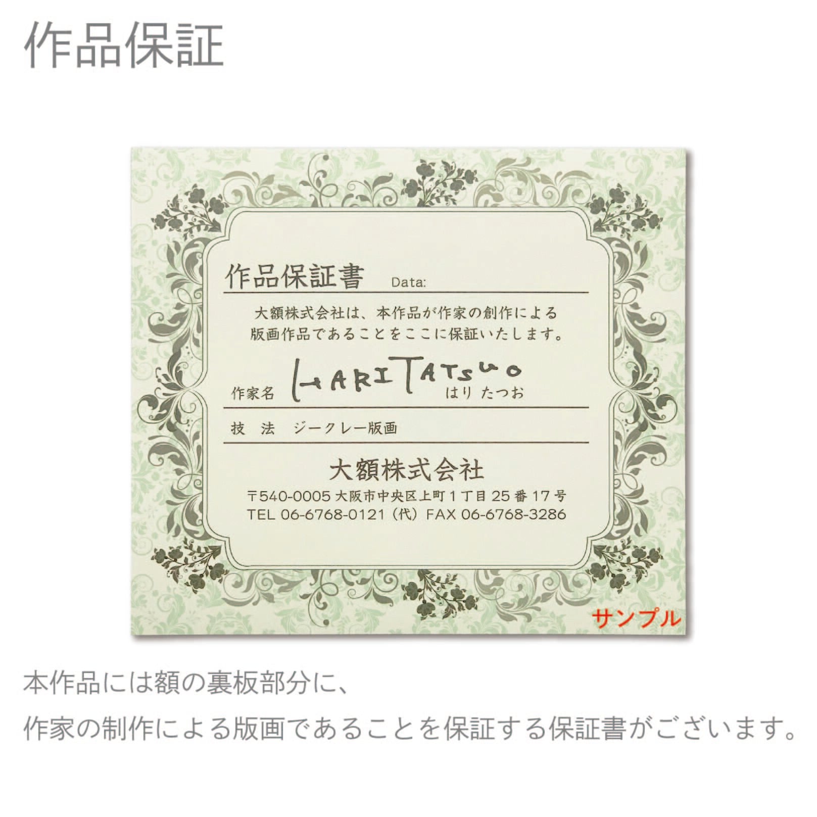図柄ごとに作家のサイン、エディションナンバーつきの版画作品で数量限定販売になっています。