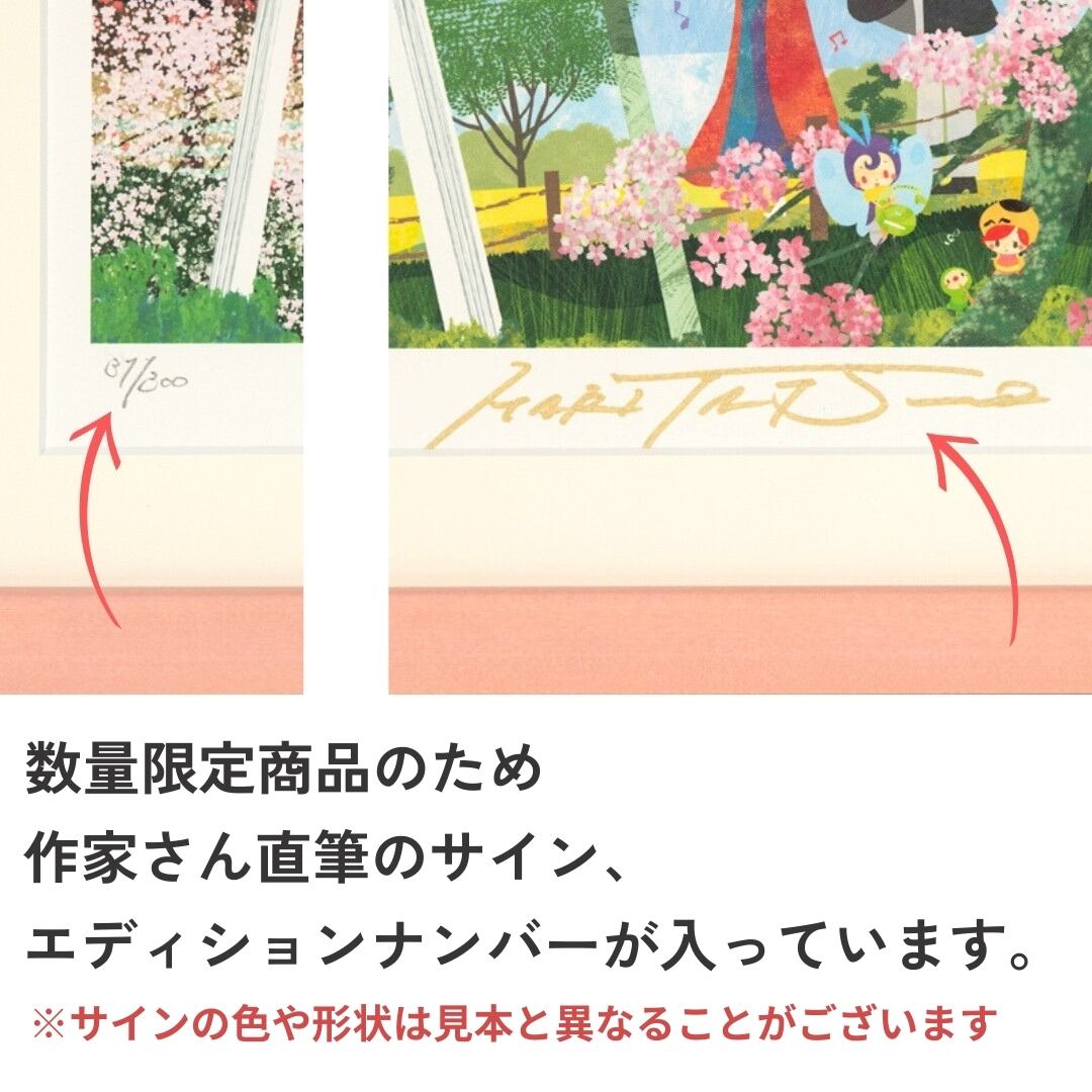 図柄ごとに作家のサイン、エディションナンバーつきの版画作品で数量限定販売になっています。