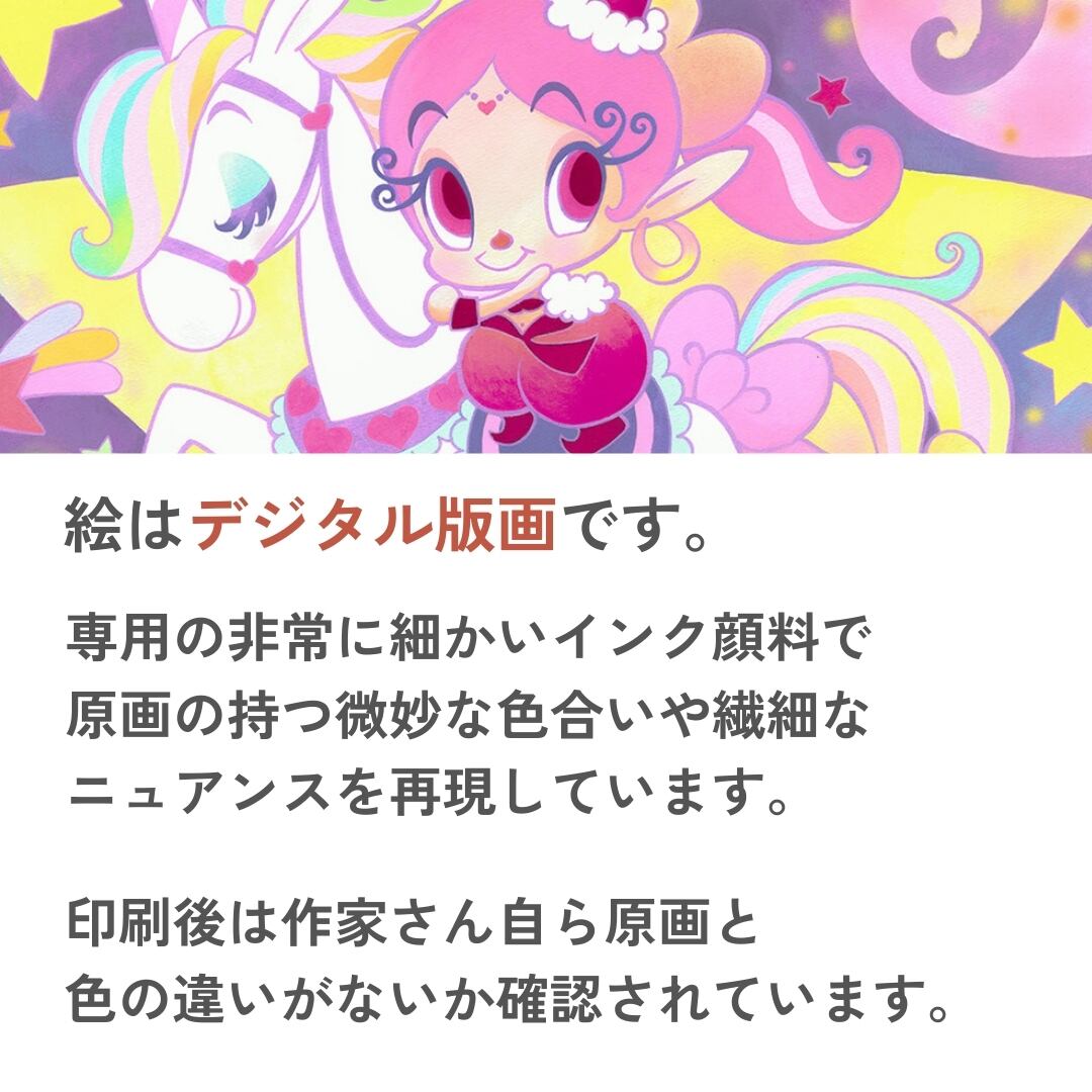 図柄ごとに作家のサイン、エディションナンバーつきの版画作品で数量限定販売になっています。