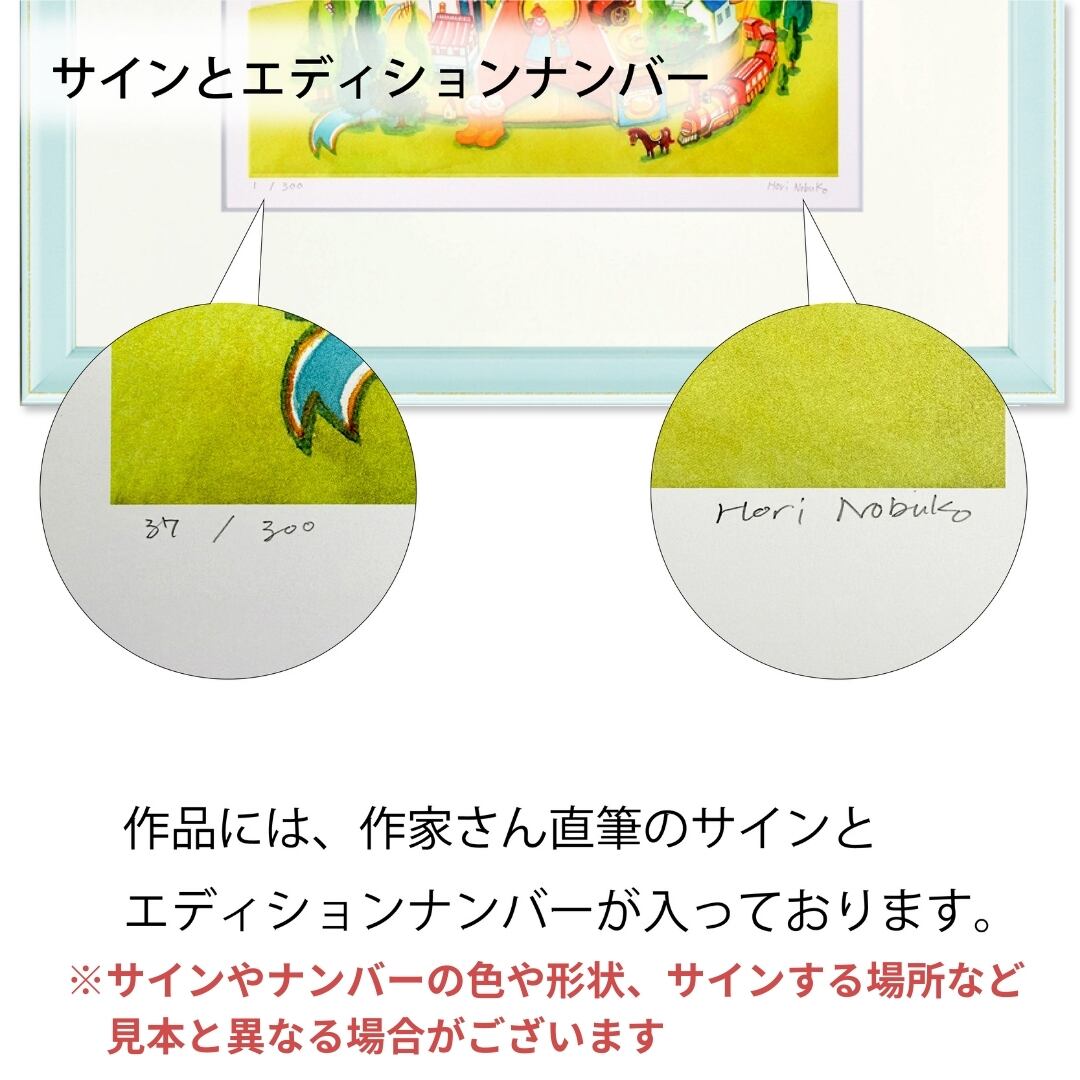 図柄ごとに作家のサイン、エディションナンバーつきの版画作品で数量限定販売になっています。