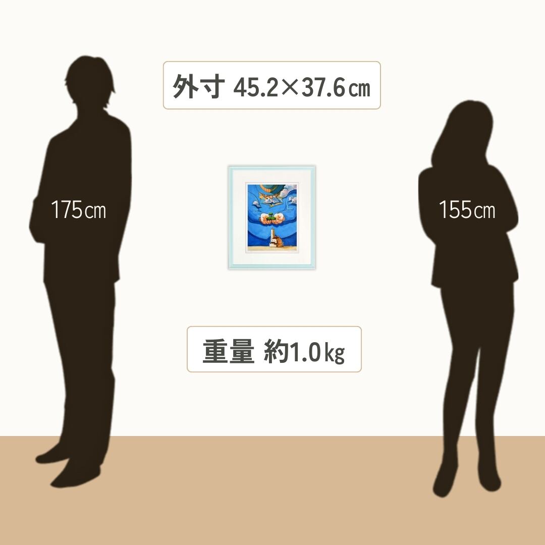 深みのあるブルーを基調としたアートは、空間に落ち着きと安心感をもたらしてくれるインテリアアートです。大きな存在に守られるような構図は、日々の暮らしに癒しを与え、見る人の心を穏やかにしてくれます。額入りアートとして仕上げられているため、リビングや寝室、書斎などどこに置いても調和し、インテリアに特別な彩りを添えます。イラストならではの温かみが、お部屋に優しさと想像力を運んでくれる一枚です。