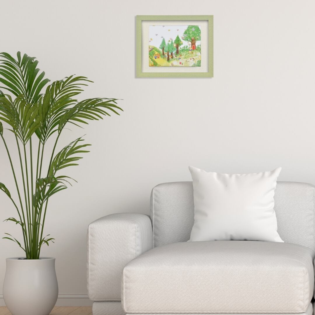 ナチュラルインテリアにぴったりのこの壁掛けアートは、リビングや子ども部屋、玄関などの空間を明るく彩ります。紙の絵画とは異なり、キャンバスの立体感とマットな風合いが、やさしく自然な雰囲気を演出。森や動物たちの柔らかな色合いが、インテリアの中に穏やかな空気をもたらします。かわいい絵画を探している方や、癒しのアートでお部屋をコーディネートしたい方におすすめの作品です。飾るだけで心がやわらぐような、ナチュラルテイストのアートです。