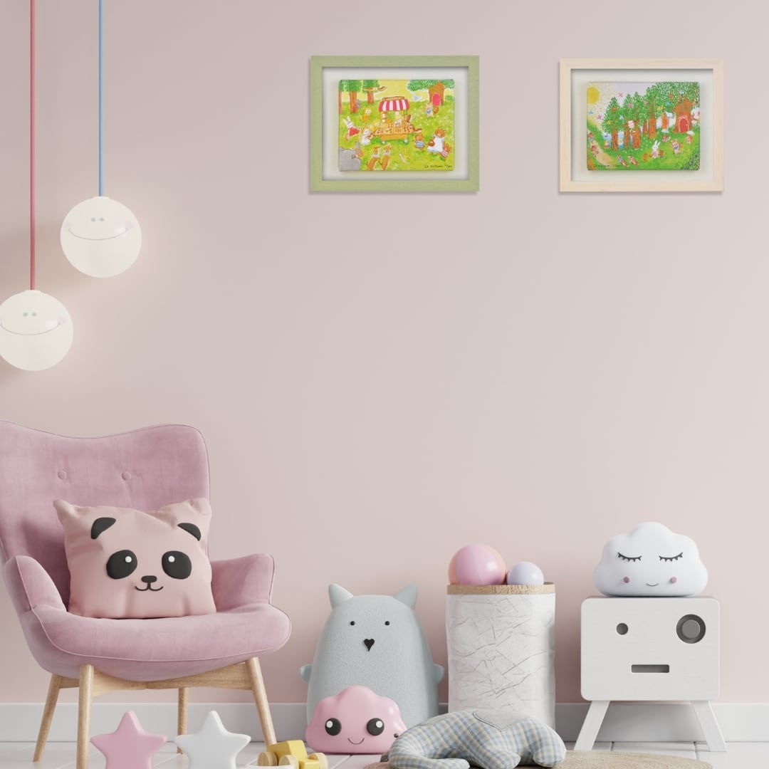 このインテリアアートは、空間に温もりと明るさを添える作品です。やさしい色合いとかわいらしいモチーフが調和し、リビングやダイニングなど家族が集まる場所にぴったり。穏やかな雰囲気が部屋全体を包み込み、毎日の生活に癒しをもたらします。木のフレームとキャンバスの質感が自然と調和し、シンプルな空間にも柔らかく馴染むのが特徴。眺めるたびに心が和むような、穏やかな時間を演出してくれる癒しアートです。