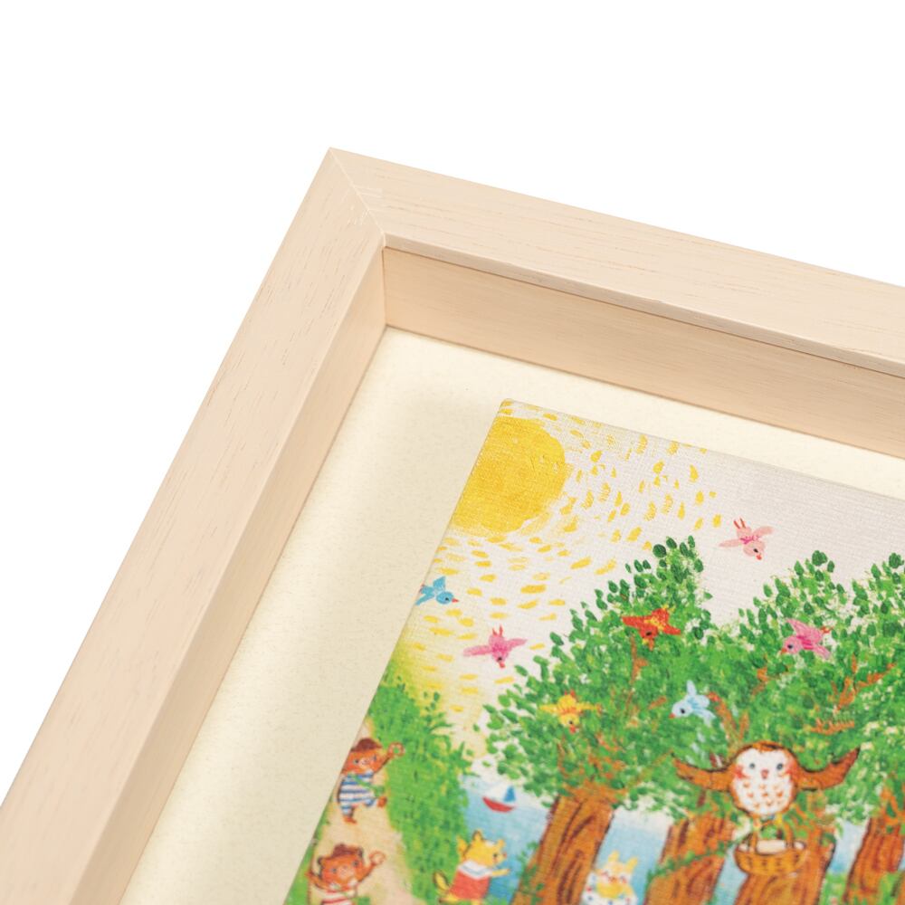 明るい緑と陽光のモチーフが、空間に爽やかな印象をもたらすインテリアアートです。リビングや子ども部屋、玄関などに飾れば、自然と穏やかな気分になれる癒しのアクセントに。森の中の動物たちの姿が日々の疲れを和らげ、リラックスできる雰囲気をつくります。ナチュラルな木製フレームとキャンバスの風合いが調和し、明るく開放的な空間を演出。季節を問わず楽しめる、自然と笑顔がこぼれるような癒しのアート作品です。