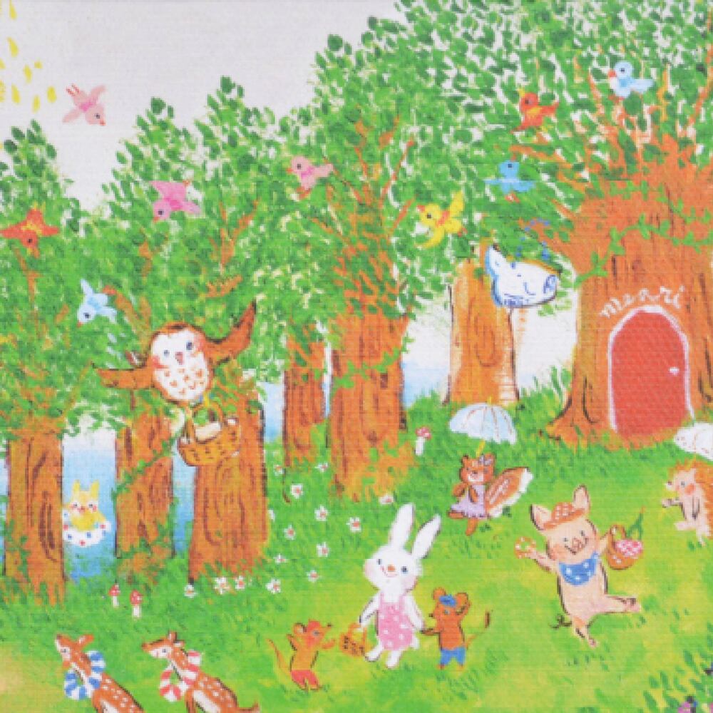 夏の陽射しがまぶしい森の中で、動物たちが楽しそうに駆け回っています。木々の間をすり抜ける光と影が生き生きと描かれ、見ているだけで心が弾むインテリアアートです。うさぎやくま、りすたちが笑顔で遊ぶ姿は、まるで絵の中に小さな物語が流れているよう。キャンバス地の凹凸が光を柔らかく反射し、葉の一枚一枚や動物たちの表情に優しい立体感を与えています。自然の中で過ごす楽しさと穏やかさを感じさせる、癒しに満ちたキャンバスアートです。
