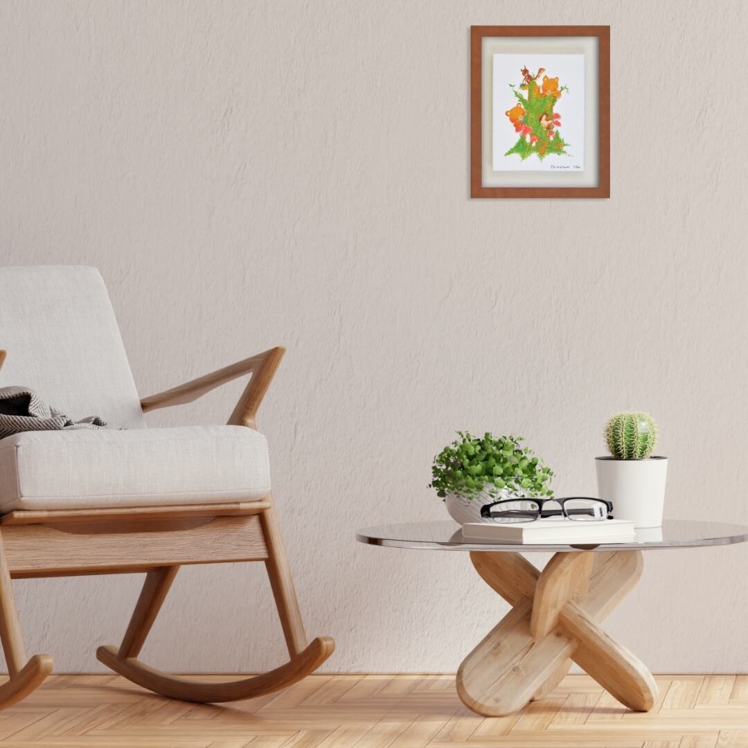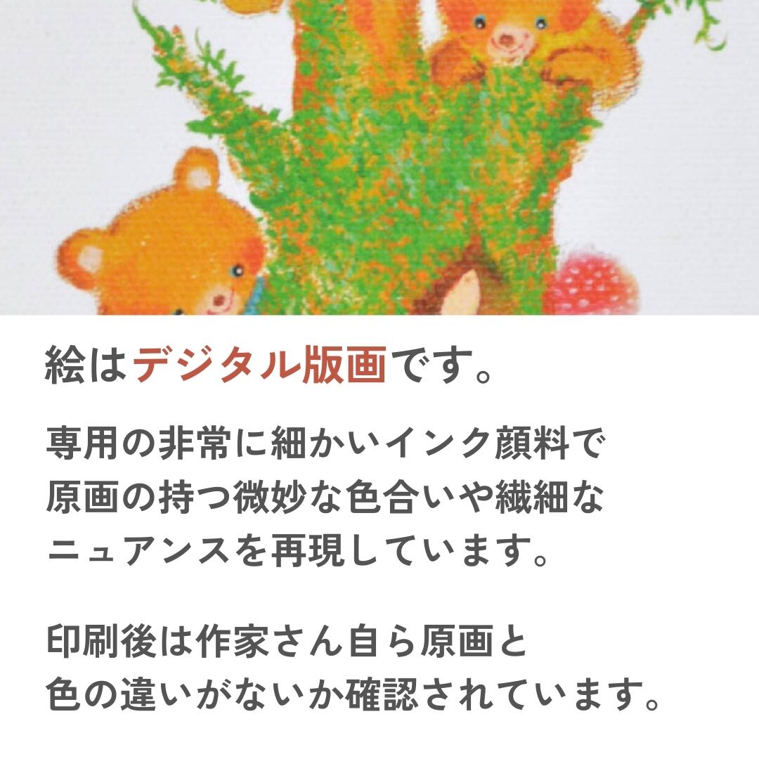 このインテリアアートは、見るたびに穏やかな気持ちを呼び起こし、空間をやさしい雰囲気で包み込みます。リビングや子ども部屋、玄関などに飾ると、まるで小さな森が訪れたような癒しの空間を演出します。鮮やかな色彩と柔らかなタッチが、日常の中に自然のぬくもりを感じさせ、インテリアとしても優れた存在感を放ちます。ナチュラルテイストや明るいお部屋づくりにもよく馴染み、毎日にほっとする時間を与えてくれるアート作品です。