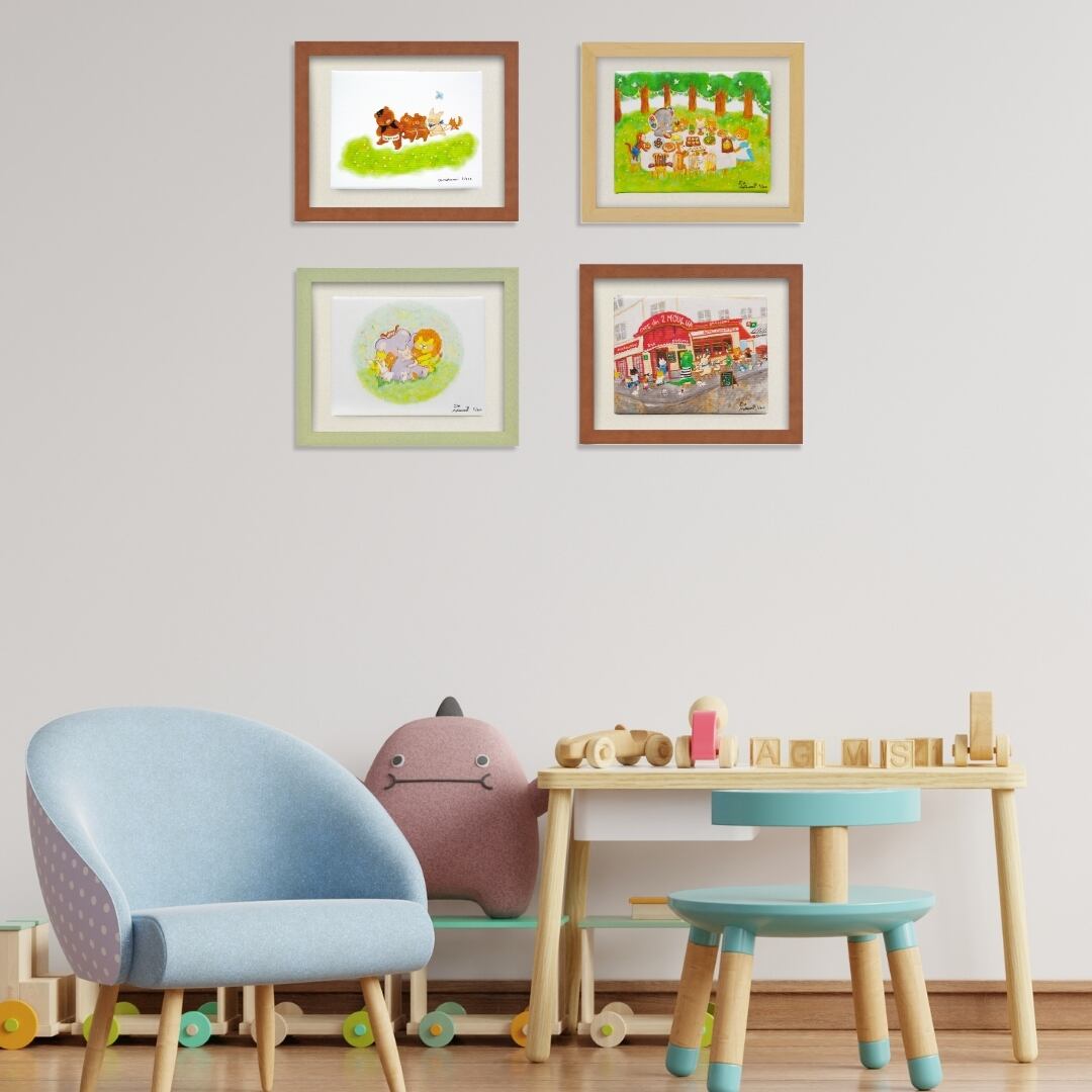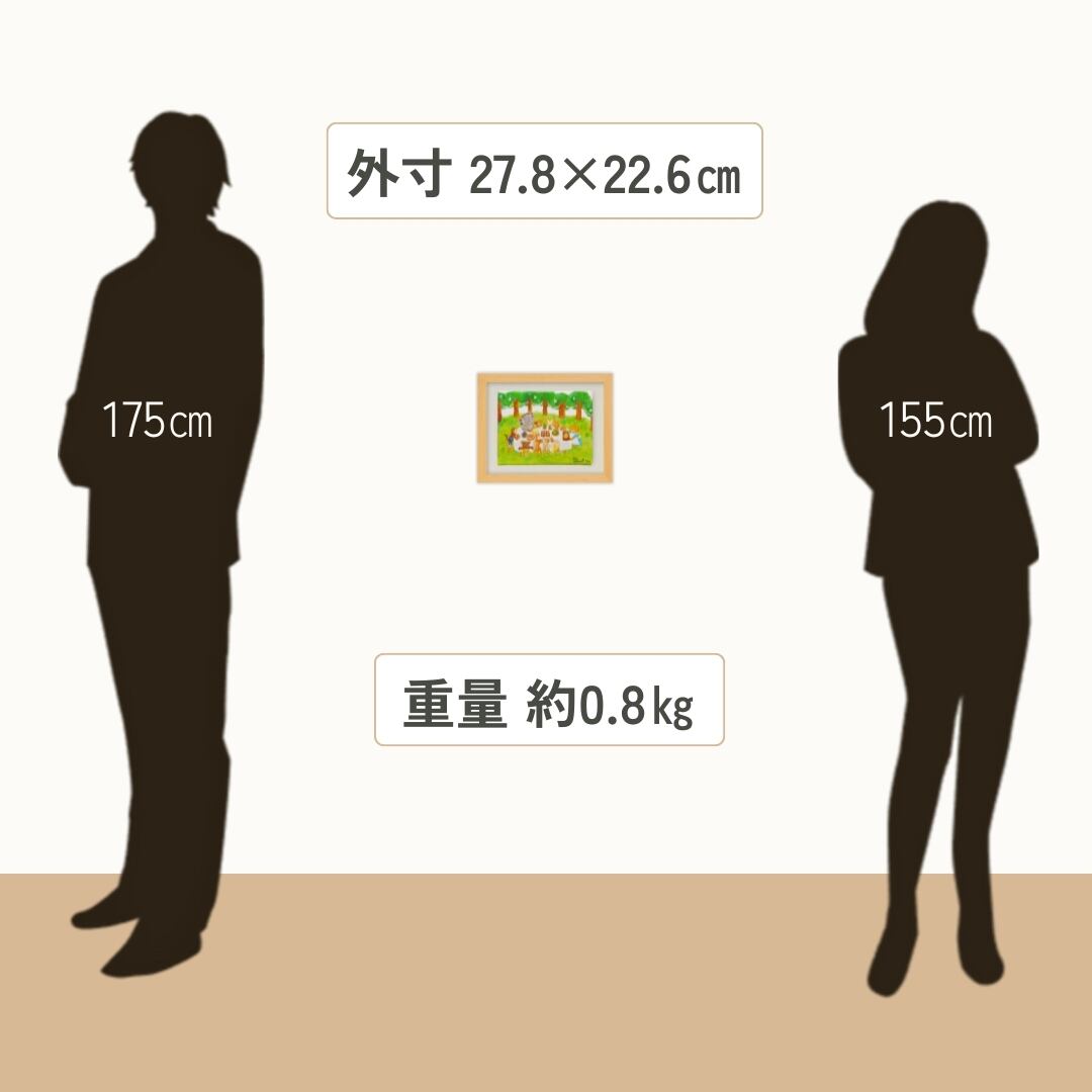 この額付きアートを飾ることで、空間に明るさと楽しさが生まれます。動物たちの穏やかな表情や温かい雰囲気は、見る人の心を自然と和ませ、リビングやダイニングを笑顔が集う場所に変えてくれます。ナチュラルな木の額縁との調和も美しく、どんなインテリアにも馴染みやすいのが特徴です。日々の暮らしの中に「ほっとする時間」を生み出してくれるこのインテリアアートは、心地よいリズムと癒しをお部屋に運んでくれます。