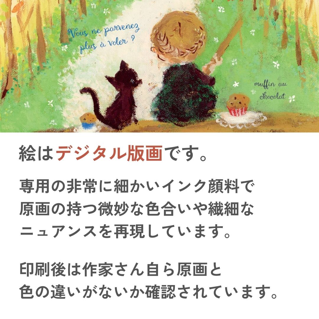 明るい色彩と温かなタッチが、観る人の心をやさしく包み、童話の1ページを開いたような世界へと誘います。