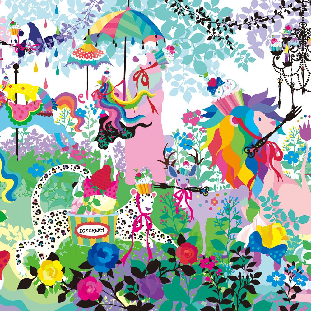カラフルなユニコーンやパンダ、花々やアイスクリームがあふれ、