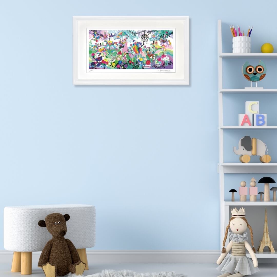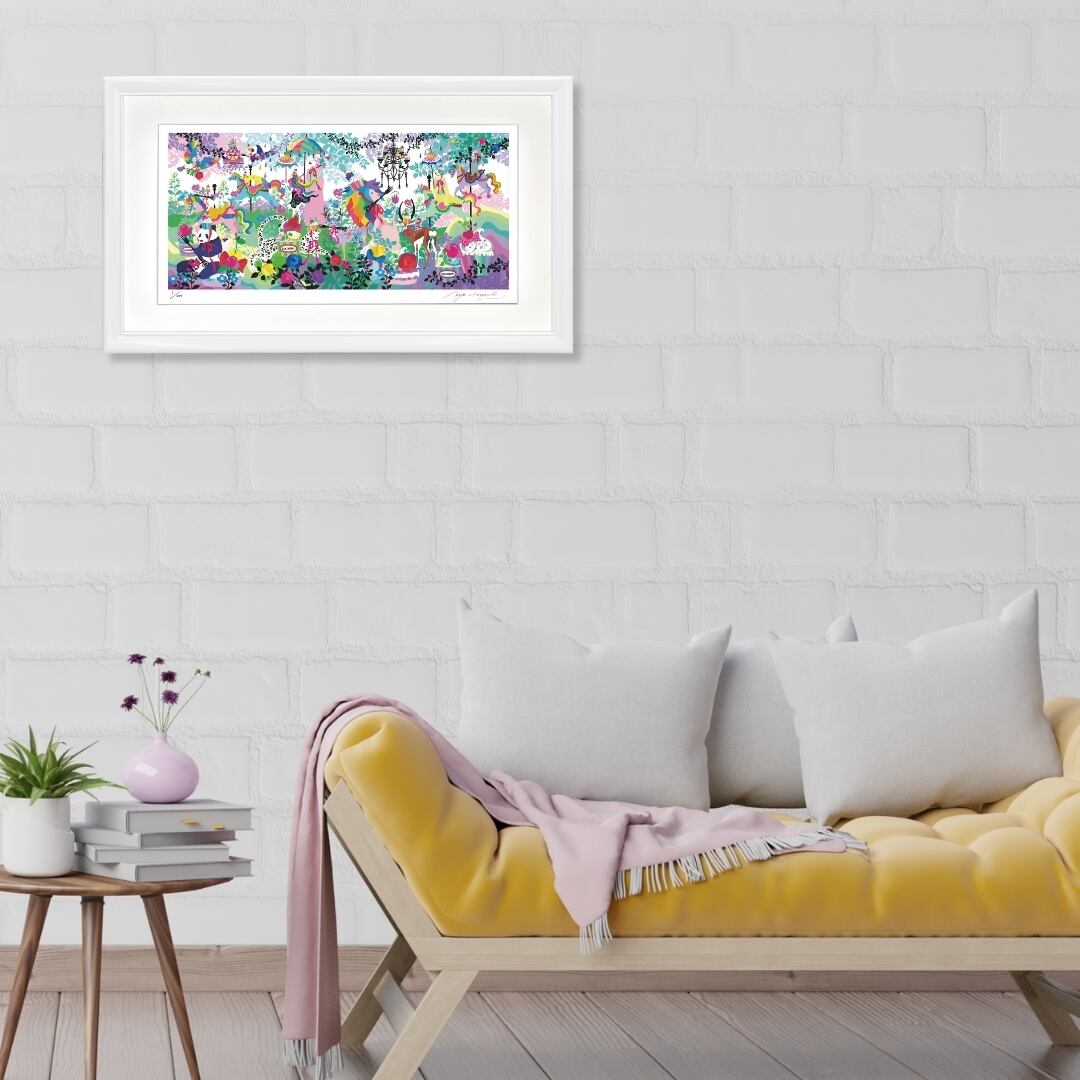 この作品は、インテリアアートとして空間に明るさと彩りを添えます。