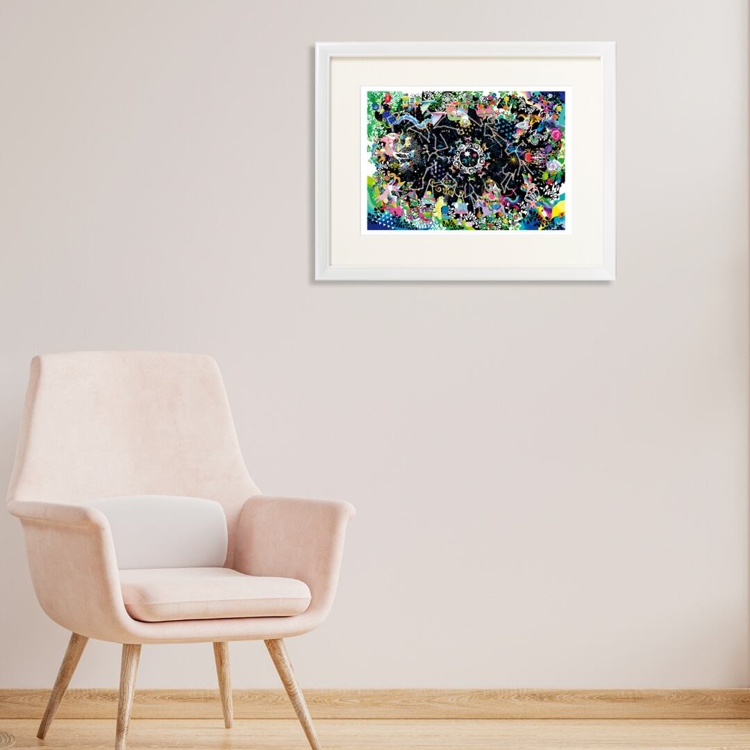この作品は、インテリアアートとして空間に静かな輝きをもたらします。漆黒の背景に浮かぶ星のきらめきが、リビングや寝室を上質で穏やかな雰囲気に包み込みます。どの角度から眺めても新しい表情を見せるため、時間とともに深まる魅力を楽しむことができます。夜をモチーフにした幻想的なデザインながら、カラフルな色調が重さを感じさせず、モダンな空間にも自然に調和。落ち着きと華やかさを併せ持ち、インテリアのアクセントとして長く愛せる作品です。日常の中に星空の神秘を取り入れるように、心を静かに照らしてくれるインテリアアートです。